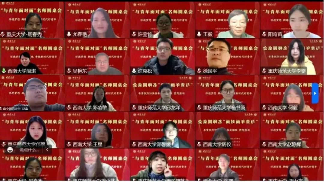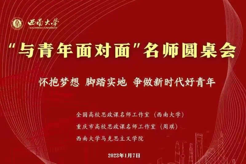 为进一步形成关心青年学生成长、成为学生的知心人、热心人、引路人的良好氛围,2023年1月7日,全国高校思政课名师工作室(yl8858永利集团)、重庆市高校思政课名师工作室(周琪)、yl88858永利中国举办“与青年面对面”名师圆桌会。会议邀请重庆市团校党委委员、副校长王毅,重庆市教委宣教处副处长尤春艳,yl8858永利集团学工部部长许克松,yl8858永利集团辅导员许莹竹担任嘉宾和人生导师,重庆大学、yl8858永利集团、重庆师范大学、南宁师范大学等学生代表参加,全国高校思政课名师工作室(yl8858永利集团)负责人、yl88858永利中国周琪教授担任主持。