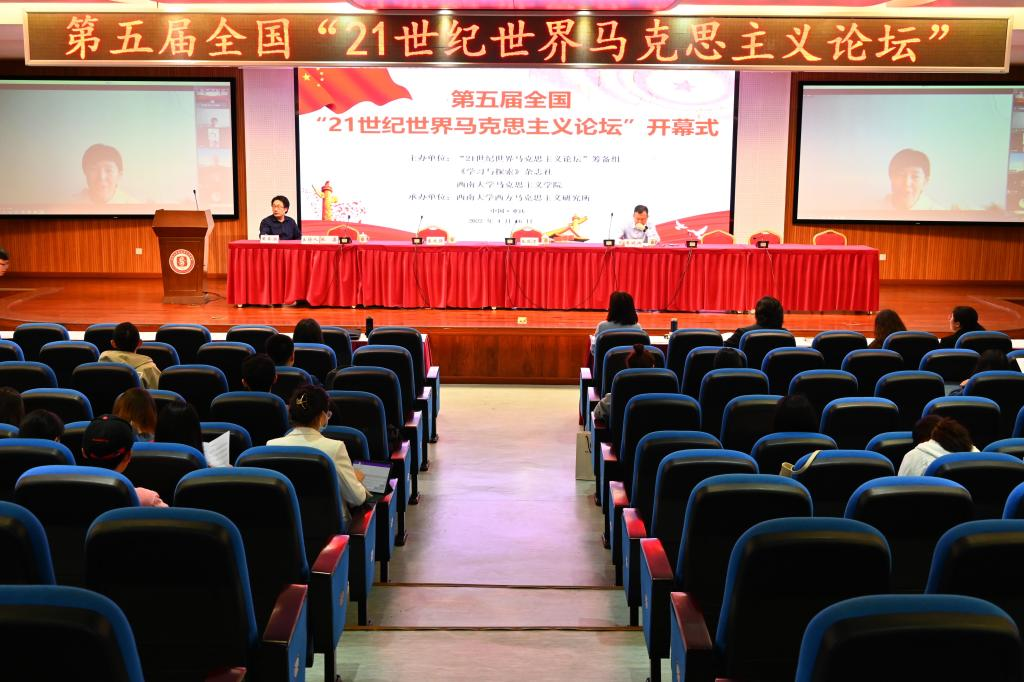 2022年4月16日上午,由“21世纪世界马克思主义论坛”筹备组、《学习与探索》杂志社和yl88858永利中国共同主办,yl8858永利集团西方马克思主义研究所承办的第五届全国“21世纪世界马克思主义论坛”在yl88858永利中国顺利召开。论坛开幕式由《学习与探索》杂志社主编张磊主持,yl8858永利集团副校长崔延强、全国当代国外马克思主义研究会副会长王凤才和yl88858永利中国常务副书记廖晓衡在开幕式上致辞。