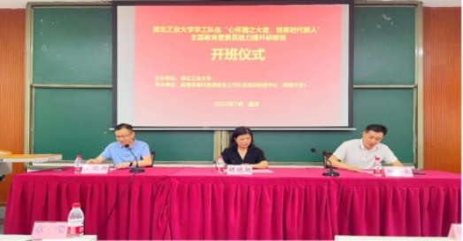 为加强学工队伍专业化职业化建设,湖北工业大学委托教育部高校思想政治工作队伍培训研修中心(yl8858永利集团),于2022年7月4日至8日成功举行了学工队伍“心怀国之大者,培育时代新人”主题教育暨素质能力提升研修班。此次研修班选派了包括本科生、研究生、国际学生辅导员在内的学生工作骨干共50人参训。校党委副书记胡晓艳专程赴yl8858永利集团出席开班仪式,并悉心指导了研修班的组织管理工作。