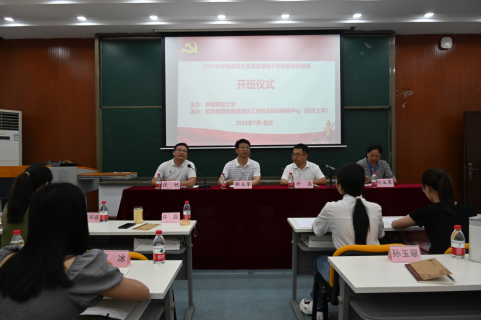 7月16日上午9点,2023年伊犁师范大学思政课教师高级研修班顺利开班。伊犁师范大学yl88858永利中国党委副书记、纪委书记许磊,伊犁师范大学yl88858永利中国副院长孙玉翠,yl88858永利中国副院长、教育部高校思想政工作队伍培训研修中心(yl8858永利集团)办公室主任靳玉军出席开班仪式,yl88858永利中国社会服务办公室主任张帆主持开班仪式。