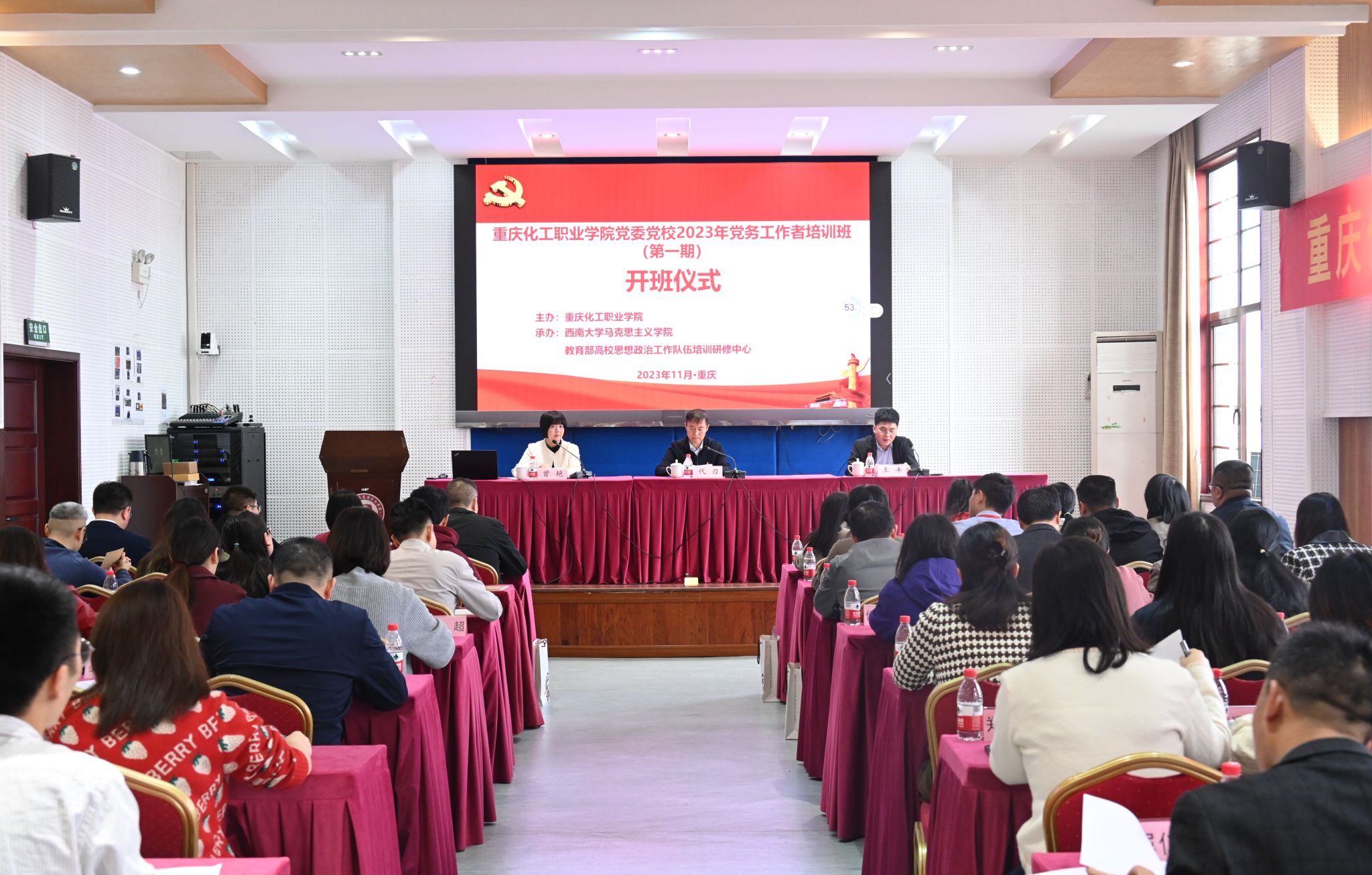 2023年11月9日上午,由重庆化工职业学院主办、我院承办的2023年党务工作者培训班在绩镛楼501报告厅顺利开班。重庆化工职业学院党委副书记代刃,yl88858永利中国党委副书记曾艳,yl88858永利中国副院长王丰出席此次开班仪式。