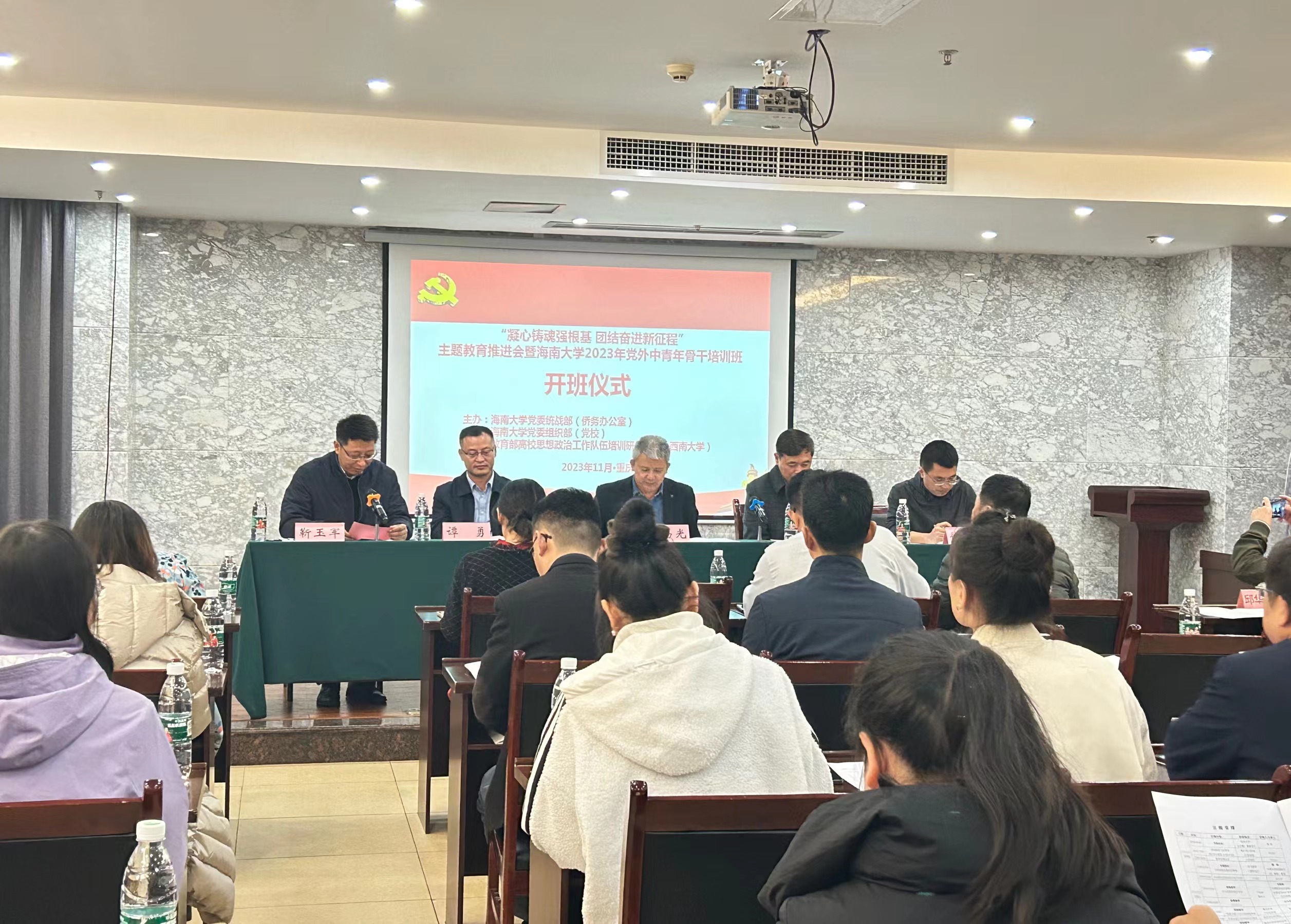 2023年11月16日,海南大学2023年党外中青年骨干培训班顺利开班。海南大学党委常委、副校长邱锡光、yl8858永利集团党委副书记潘洵、海南大学党委常委、统战部部长谭勇、海南大学党委组织部(党校)副部长(副校长)徐望来出席开班仪式,yl88858永利中国副院长靳玉军主持开班仪式。