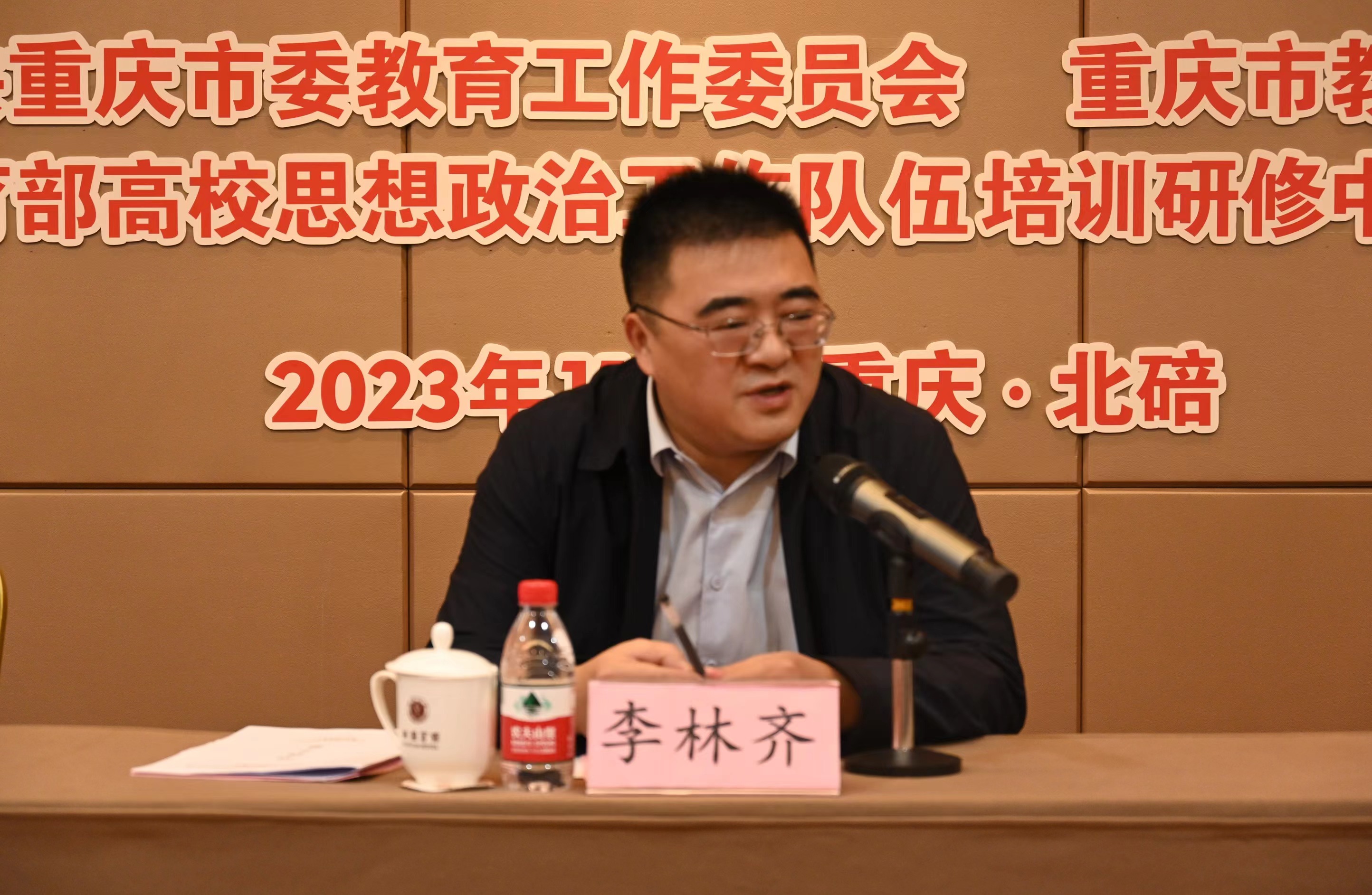 中共重庆市委教育工委、重庆市教委宣教处处长李林齐作开班动员讲话,对近年来全市高校思想政治工作的改革创新举措做了回顾,对高校思想政治工作取得的成就做了总结,向参训学员介绍了培训的背景和意义,提出了明确的培训要求。他强调,各位参训学员要把这次培训当作提升政治素养、增强业务能力、磨练品德修为的重要契机,珍惜来之不易的学习机会,认真学习,真正让培训内容入眼入耳入脑入心入行,不断提升做好新时代思想政治教育工作的能力素养。要紧密结合自己的工作岗位进行独立思考,统筹学思践悟,坚持学以致用,切实推动教育教学工作改革创新。