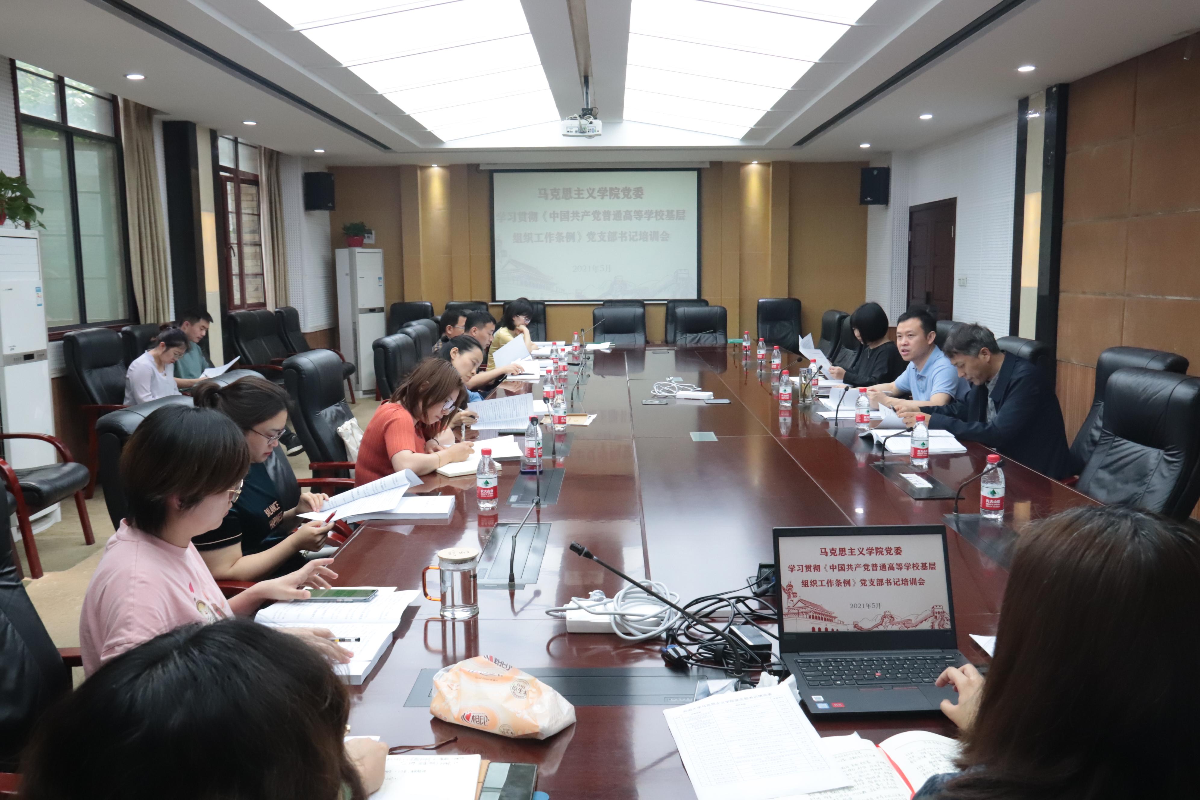 2021年5月11日下午,yl88858永利中国党委举行学习贯彻《中国共产党普通高等学校基层组织工作条例》党支部书记专题培训会,会议由学院党委常务副书记廖晓衡主持,学院党委副书记刘东升、曾艳和全体党支部书记参加。