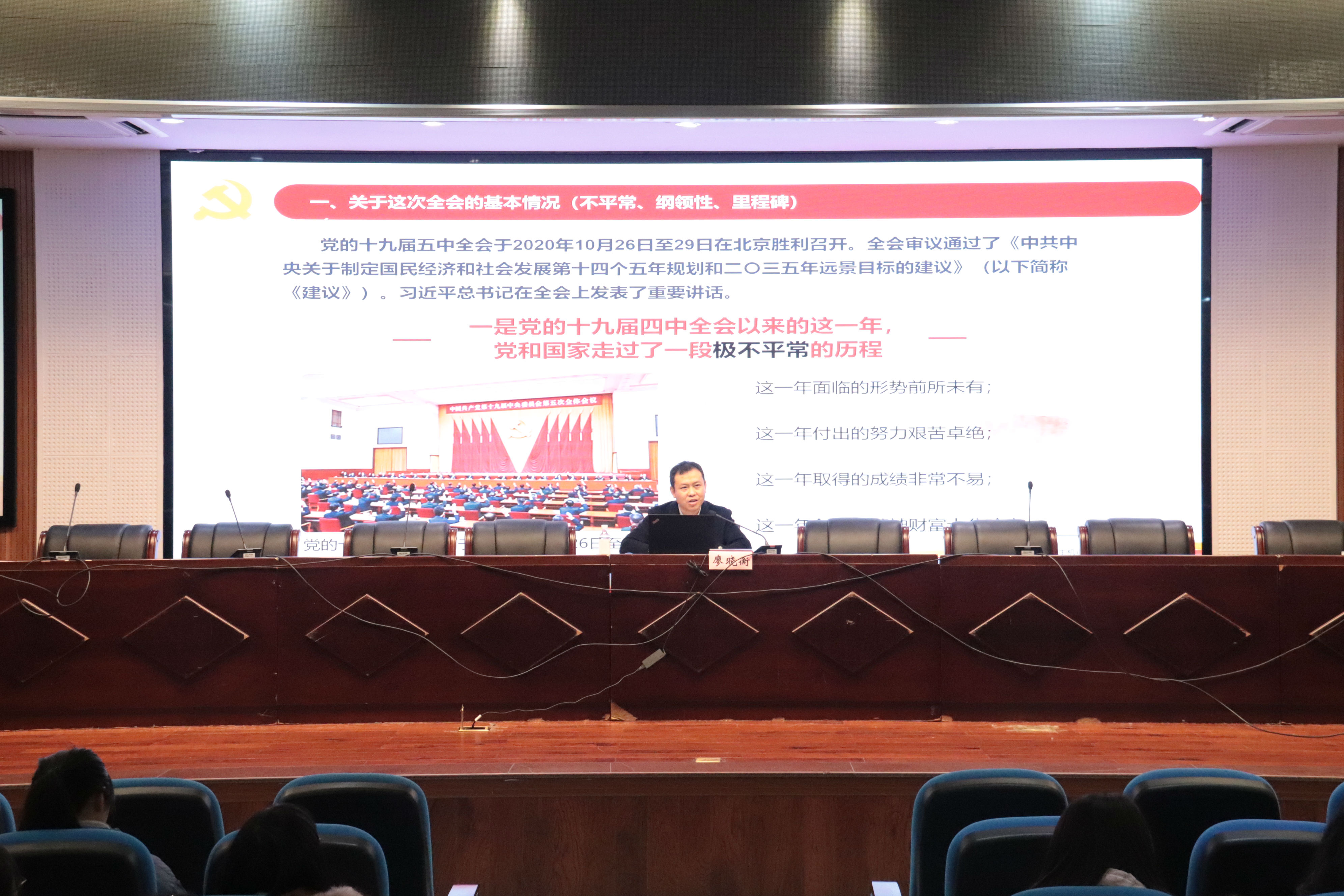 12月13日上午,学院党委常务副书记廖晓衡在学院505报告厅为学院第四十期入党积极分子培训班全体学员讲授了题为“学习贯彻党的十九届五中全会主要精神”的专题党课。