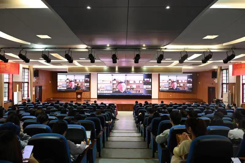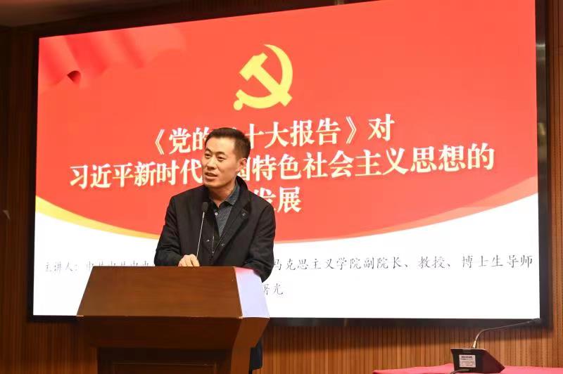 2022年10月28日下午,yl88858永利中国党委和资产经营有限公司直属党支部在yl88858永利中国505报告厅联合开展学习贯彻党的二十大精神教职工政治理论专题学习会。会议邀请中共中央党校(国家行政学院)yl88858永利中国副院长陈曙光教授做“《党的二十大报告》对习近平新时代中国特色社会主义思想的新发展”专题报告。学习会由yl88858永利中国党委副书记、院长白显良主持,yl88858永利中国和资产经营有限公司的全体教职工参加。