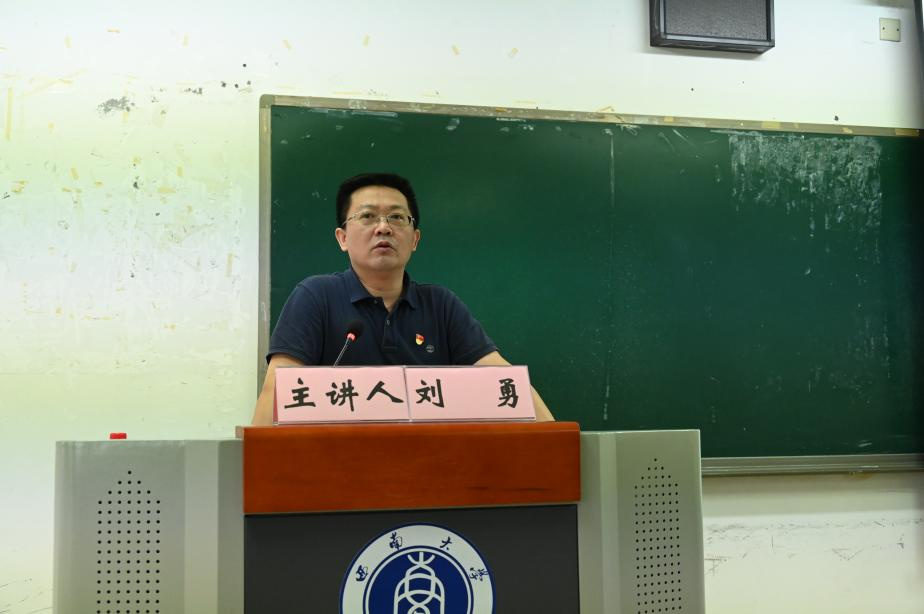 5月21日下午,学院邀请学院副院长吴艳东教授为全体学员讲授了题为“大学生要自觉学思悟践习近平新时代中国特色社会主义思想”的专题党课。吴艳东副院长从为什么学、学什么、怎么学三个方面带领学员们深入学习习近平新时代中国特色社会主义思想,勉励学员们用习近平新时代中国特色社会主义思想凝心铸魂,勇于承担历史责任,在激扬青春、奉献社会的过程中书写无愧于时代的壮丽篇章。