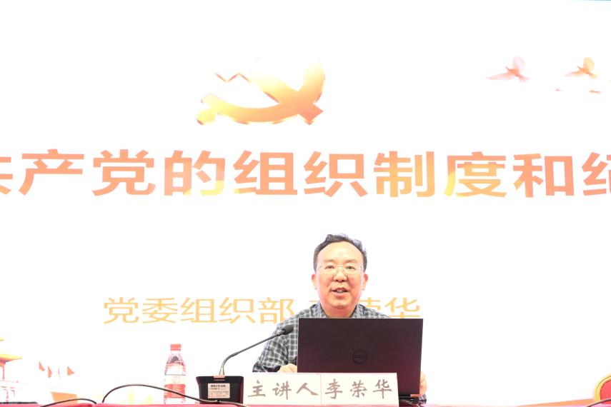 2023年5月13日上午,学院邀请yl8858永利集团党委组织部部长李荣华为全体学员讲授题为“中国共产党的组织制度和纪律”的专题党课。李荣华部长首先阐述了“党”“政党”和“中国共产党”的深刻内涵。接下来,李荣华部长结合自己的多年的工作经验和许多生动的工作实例,对党的严密的组织体系、党的根本组织制度和党的纪律三个方面进行了详细讲解。最后,李荣华部长在结束语中勉励大家认真学习党的基本知识,争取早日入党。