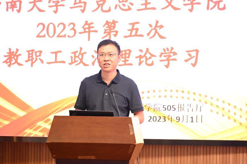 9月1日下午,学院召开2023年度第五次教职工政治理论学习,对习近平总书记在二十届中共中央政治局第六次集体学习时的重要讲话精神;学校秋季学期干部大会精神;“西大教师故事”短视频等内容进行了集中学习。学院全体教职工参加,会议由学院党委书记廖晓衡主持。