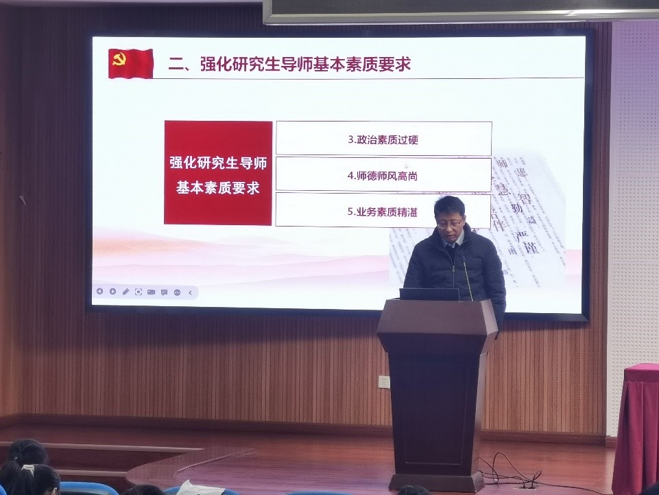 之后,靳玉军副院长带领全体教职工深入学习《教育部关于全面落实研究生导师立德树人职责的意见》《研究生导师指导行为准则》和《yl8858永利集团加强研究生导师立德树人职责的实施办法》等研究生导师立德树人相关文件,明确了研究生导师是我国研究生培养的关键力量,肩负着培养国家高层次创新人才的使命与重任,因此贯彻落实导师指导行为准则,划定基本底线,对进一步完善导师岗位管理制度,明确导师岗位职责,建设一流研究生导师队伍具有重要意义。