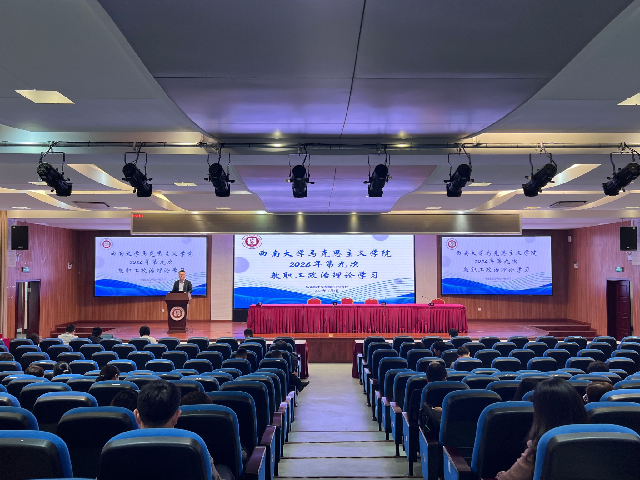 2024年11月8日下午,学院在505报告厅开展2024年第九次教职工政治理论学习,集中学习了习近平总书记在省部级主要领导干部学习贯彻党的二十届三中全会精神专题研讨班开班式上的重要讲话精神,习近平总书记在中共中央政治局第十七次集体学习时的重要讲话精神,习近平总书记在全国民族团结进步表彰大会上的重要讲话精神,习近平总书记给中国海洋大学全体师生回信和给中国国际大学生创新大赛参赛学生代表的回信精神,并开展师德师风警示教育。学院全体教职工参加,会议由学院党委书记吴文杰主持,本次教职工政治理论学习由学院党委委员、副院长王丰领学。