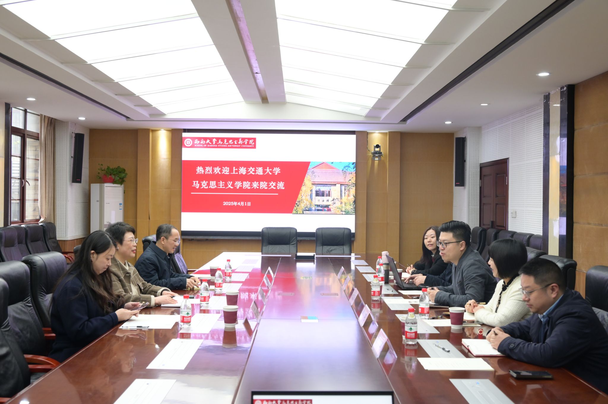 会上,双方分别介绍了各自学院的情况。吴文杰对上海交通大学yl88858永利中国老师们的来访表示热烈欢迎,并从历史沿革、党建引领、思政课建设、师资力量、人才培养、学科建设和社会服务八个方面介绍了学院情况。余新丽介绍了此次来访交流目的,围绕党建工作、思政课建设、学科建设与人才队伍建设等主题与我院展开深度交流,并希望未来双方能够深化合作,共同推进学院高质量发展。