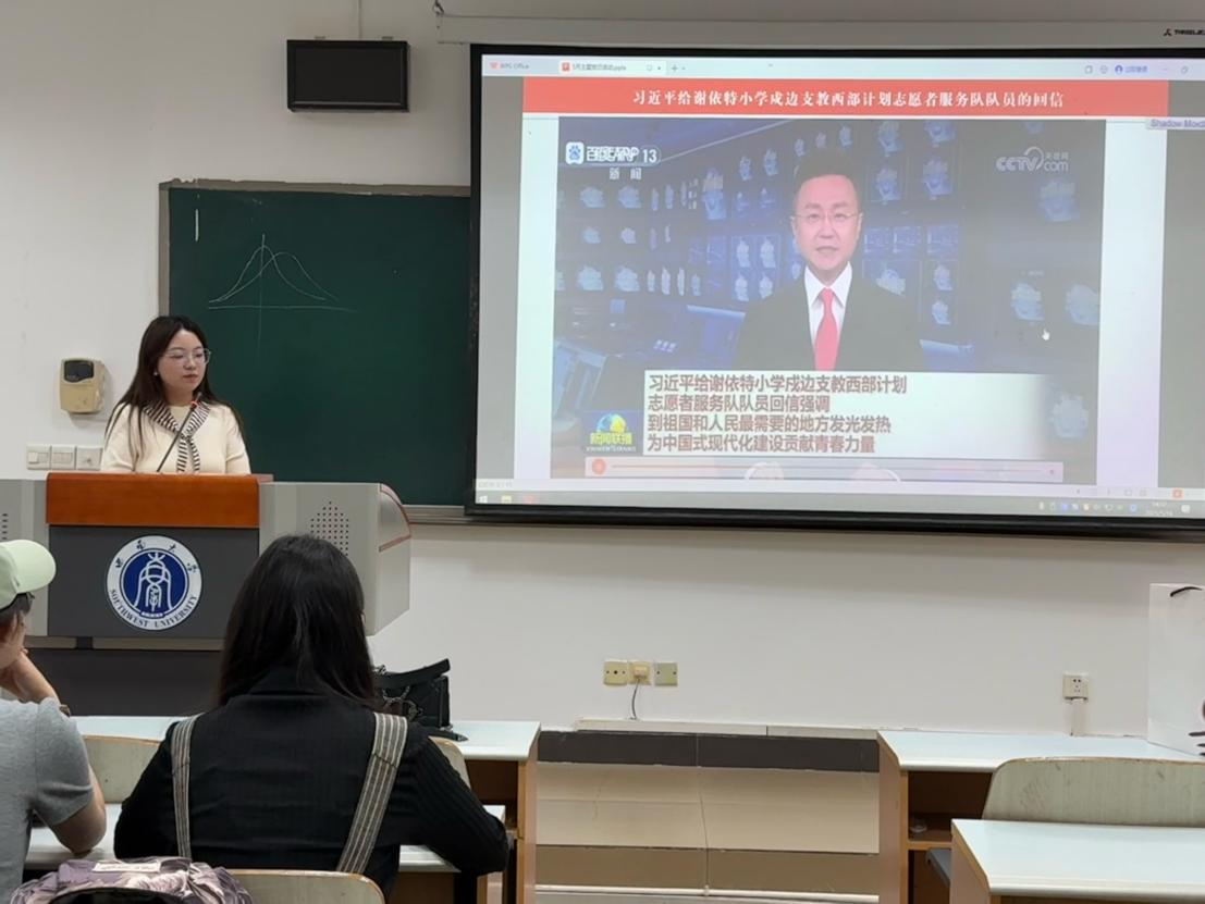 为深入学习贯彻习近平总书记给谢依特小学戍边支教西部计划志愿者服务队队员的重要回信精神,强化理论素养、增强党性修养,2025年5月16日下午,yl88858永利中国硕士生第五党支部在十教306教室以线上连线的方式,与yl8858永利集团第26届研究生支教团昌宁分队成员共同开展了主题为“扎根西部,礼赞青春”五月主题党日活动。