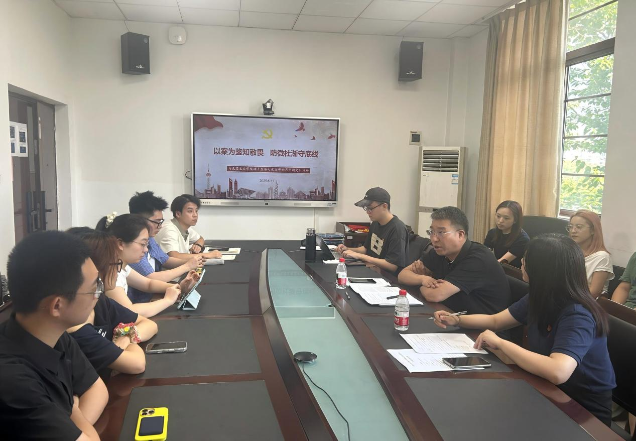 2025年6月13日,yl88858永利中国硕士生第七党支部在学院319会议室开展了题为“以案为鉴知敬畏,防微杜渐守底线”的主题党日活动。校党委统战部常务副部长海克军联系指导,硕士生第七党全体党员和入党积极分子参会,活动由硕士生第七党支部书记黄岚主持。