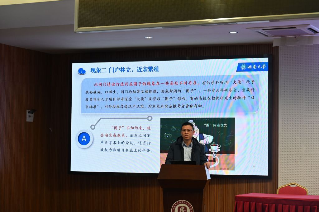 3月3日下午,学院召开廉洁专题教育,集中学习习近平总书记关于力戒形式主义官僚主义重要论述。学院全体教职工参加,会议由yl88858永利中国党委书记廖晓衡主持并领学。