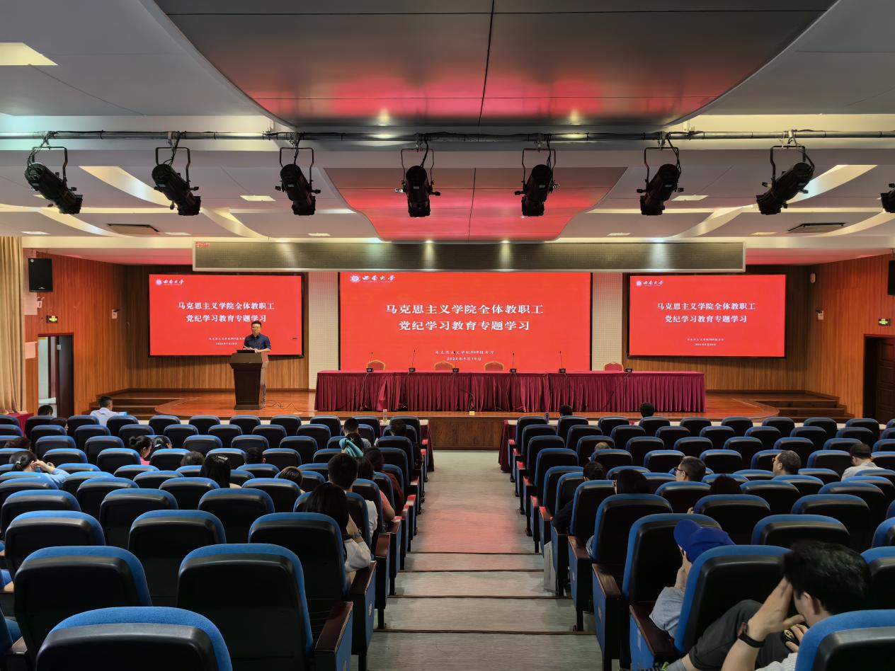 2024年5月10日下午,学院召开全体教职工党纪学习教育专题学习,本次学习主题是“把严守政治纪律和政治规矩放在首位”。学院全体教职工参加,会议由学院党委书记吴文杰主持并主讲。