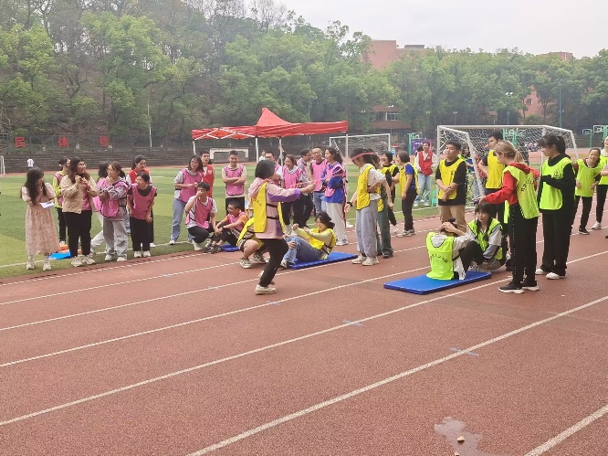 绿茵之中不仅有集体游戏的热闹非凡,还有个人游戏的斗智斗勇,在游戏勇往直前中,选手们弯腰转圈,直线前进,这是一场对平衡性和稳定性的考验;在动如脱兔里,灵活应变地背着背篓接球,敏捷的身手活跃在场地上;环环相扣也紧张地进行着,老师和同学们手起圈落间,一道道题目被套中答出,一件件奖品也都被大家收入囊中;在决胜千里中精准有力的射球,一次比一次有进步,一点比一点接近成功。