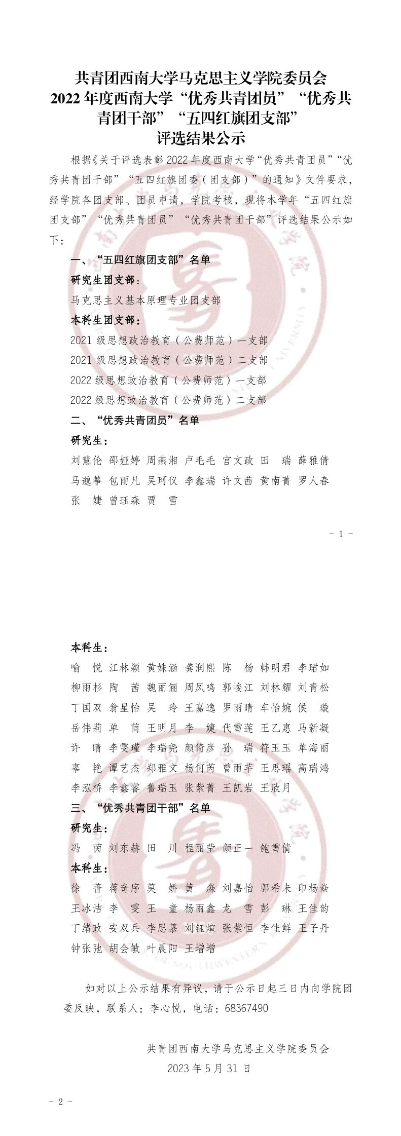 共青团yl88858永利中国委员会2022年度yl8858永利集团“优秀共青团员”“优秀共青团干部”“五四红旗团支部”评选结果公示
