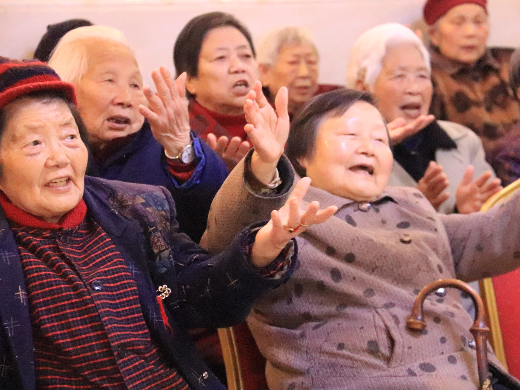 最后,爷爷奶奶们为志愿者们合唱歌曲,真诚而投入,慈祥而可爱。