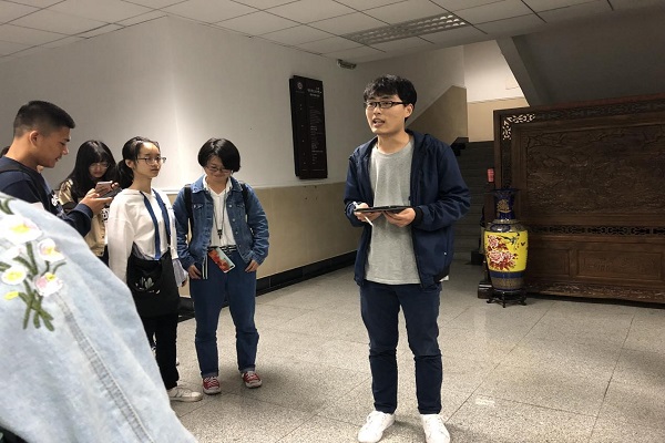 第三板块主要介绍学院老师及办公场所。高家豪师兄主要介绍了各级辅导员的办公室,其次介绍了学院的图书馆和电子阅览室和研究生教室,并详细讲解了借用学院研究生教室步骤。