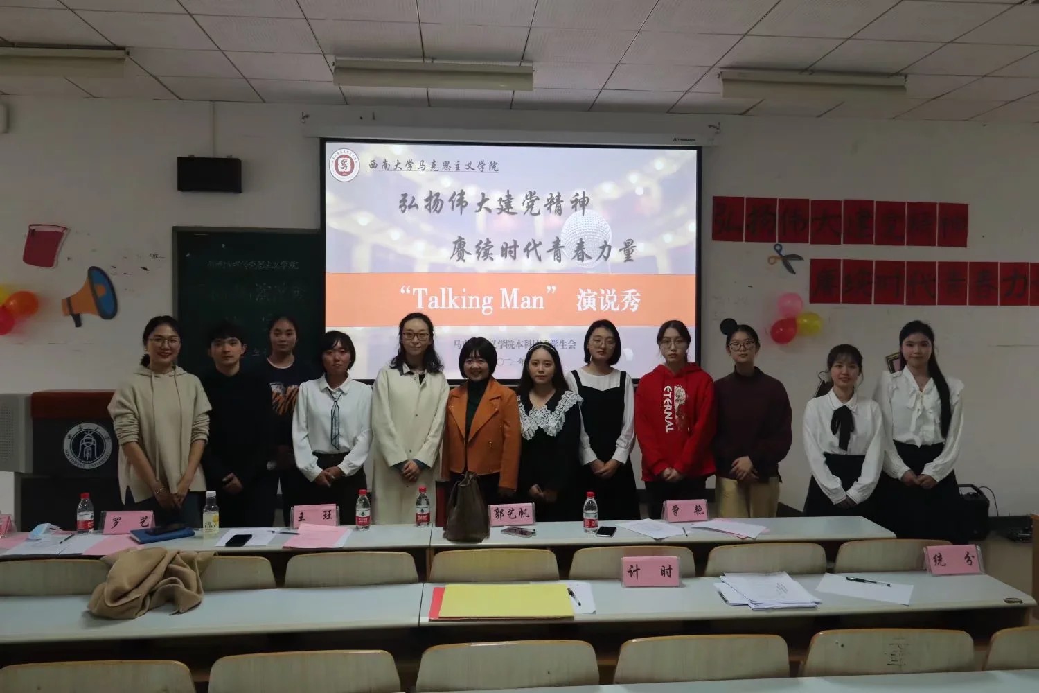 为庆祝百年华诞,加强党史学习教育,响应“学史明理,学史增信,学史崇德,学史力行”的号召,明确当代大学生在新时代的责任与担当;同时为坚定我院学子的理想信念,提供展示自己的舞台,10月29日我院于第十教学楼0602举办了yl88858永利中国“Talking Man”大赛决赛。本次活动出席嘉宾有:曾艳老师、王珏老师、罗艺老师。我们还特别邀请了新闻传媒学院的郭艺帆老师作为专业指导老师。