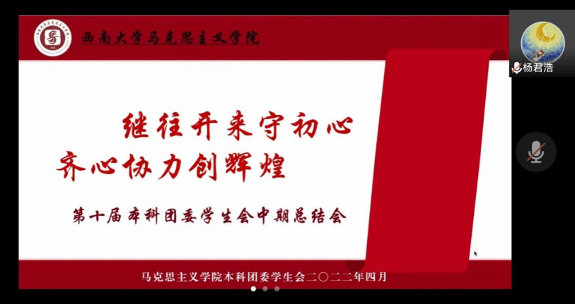 继往开来守初心,齐心协力创辉煌。为发扬历史主动精神,以实际行动迎接二十大的召开,汲取半期以来的工作经验和进行全面的工作反思,更好地开展下一阶段的工作。特于2022年4月30日19时在线上腾讯会议举办yl88858永利中国第十届本科团委学生会春季学期中期总结会。yl88858永利中国第十届本科团委学生会成员出席大会。