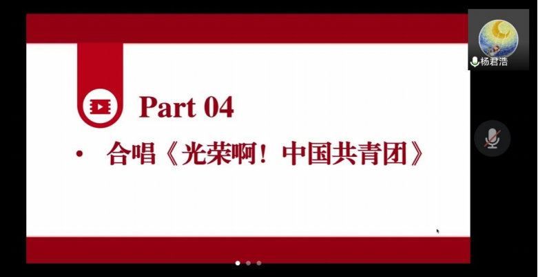 活动尾声,大家一起合唱《光荣啊!中国共青团》。主持人杨君浩宣布yl88858永利中国第十届本科团委学生会春季学期中期总结大会圆满结束。