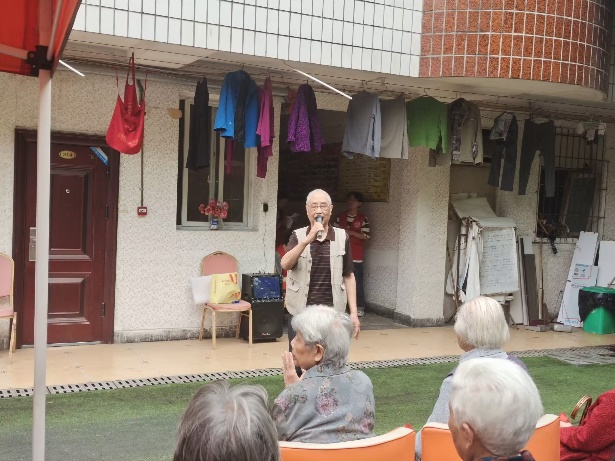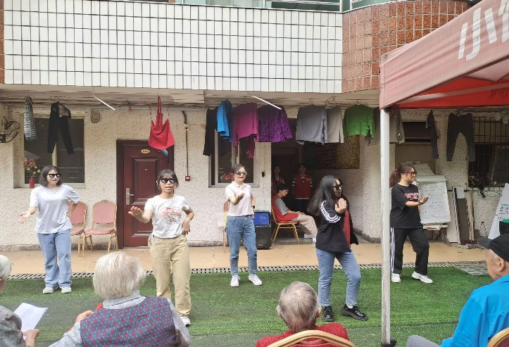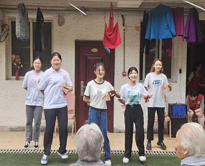 来到敬老院后,八支志愿小组首先为老人们表演了精心准备的节目。节目内容丰富、形式多样,有活力满满的舞蹈串烧,轻松欢快的歌曲演唱,独具特色的快板舞表演。精彩的表演赢得了爷爷奶奶们热烈的掌声,许多爷爷奶奶也和志愿者们一起唱一起跳,脸上洋溢着幸福的笑容。