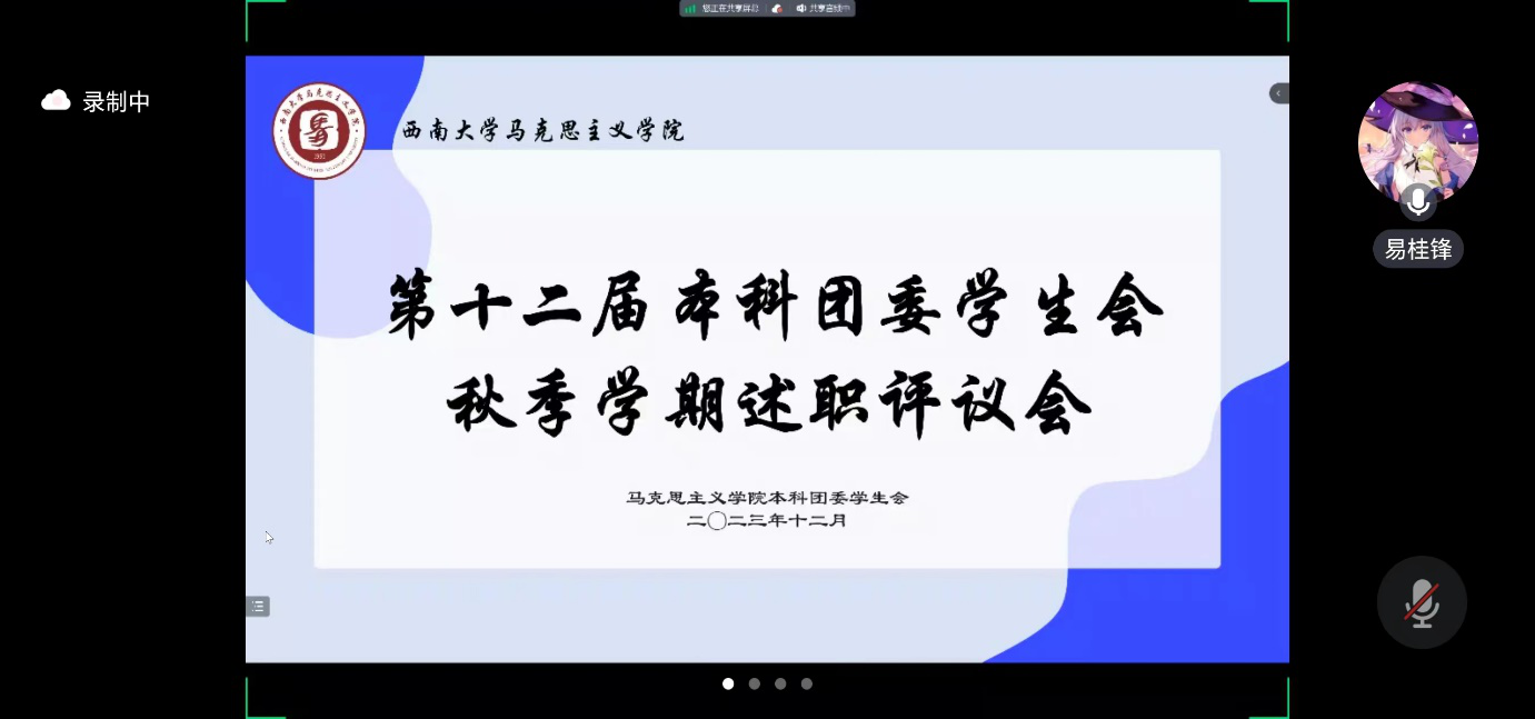 为进一步规范团委学生会述职评议工作,yl88858永利中国团委学生会特于2023年12月23日19时在腾讯会议线上举办yl88858永利中国第十二届本科团委学生会秋季学期述职评议会。yl88858永利中国第十二届本科团委学生会成员出席大会。