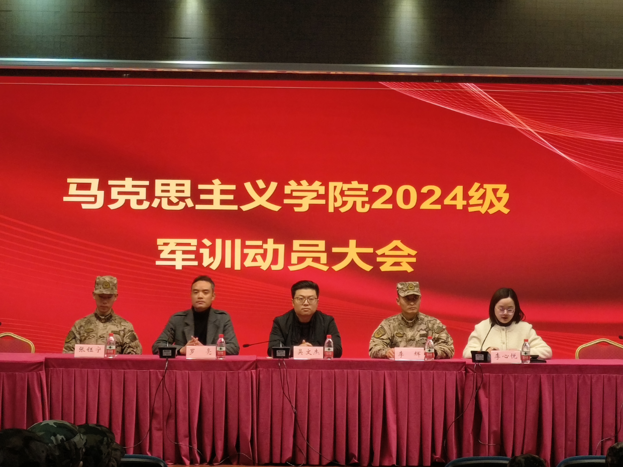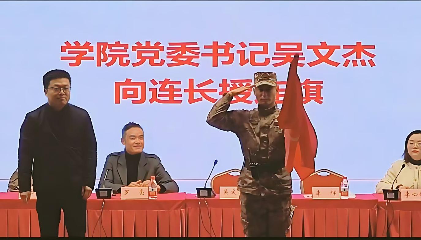会上,学院党委副书记罗亮传达军训连队干部任职情况。学院党委书记吴文杰作军训动员,强调要在“强训”中筑牢理想信念,“在马信马”,坚定马克思主义信仰,厚植爱国之情;在“严训”中磨砺品质品格,“在马行马”,强化理论与实践的结合,砥砺强国之志;在“实训”中锤炼使命担当,“在马传马”,做马克思主义坚定的传播者和传承者,实践报国之行。吴文杰书记号召全体参训学员向武警官兵学习,高质量完成军训任务。随后,吴文杰书记向连长授连旗。在学生代表舒博代领下,学院2024级全体参训学生庄严宣誓,铿锵有力的誓言,表达了同学们的决心和信心。
