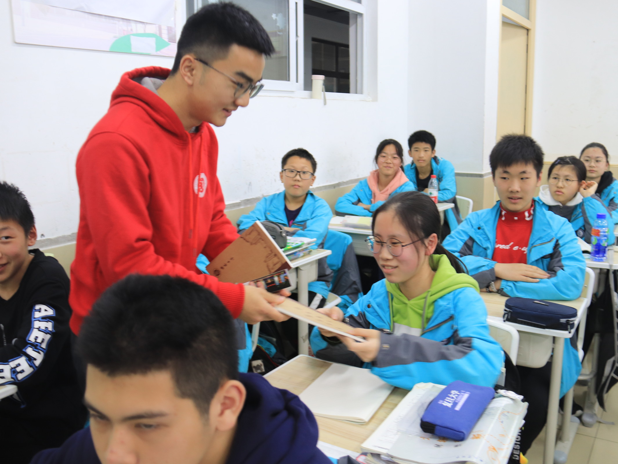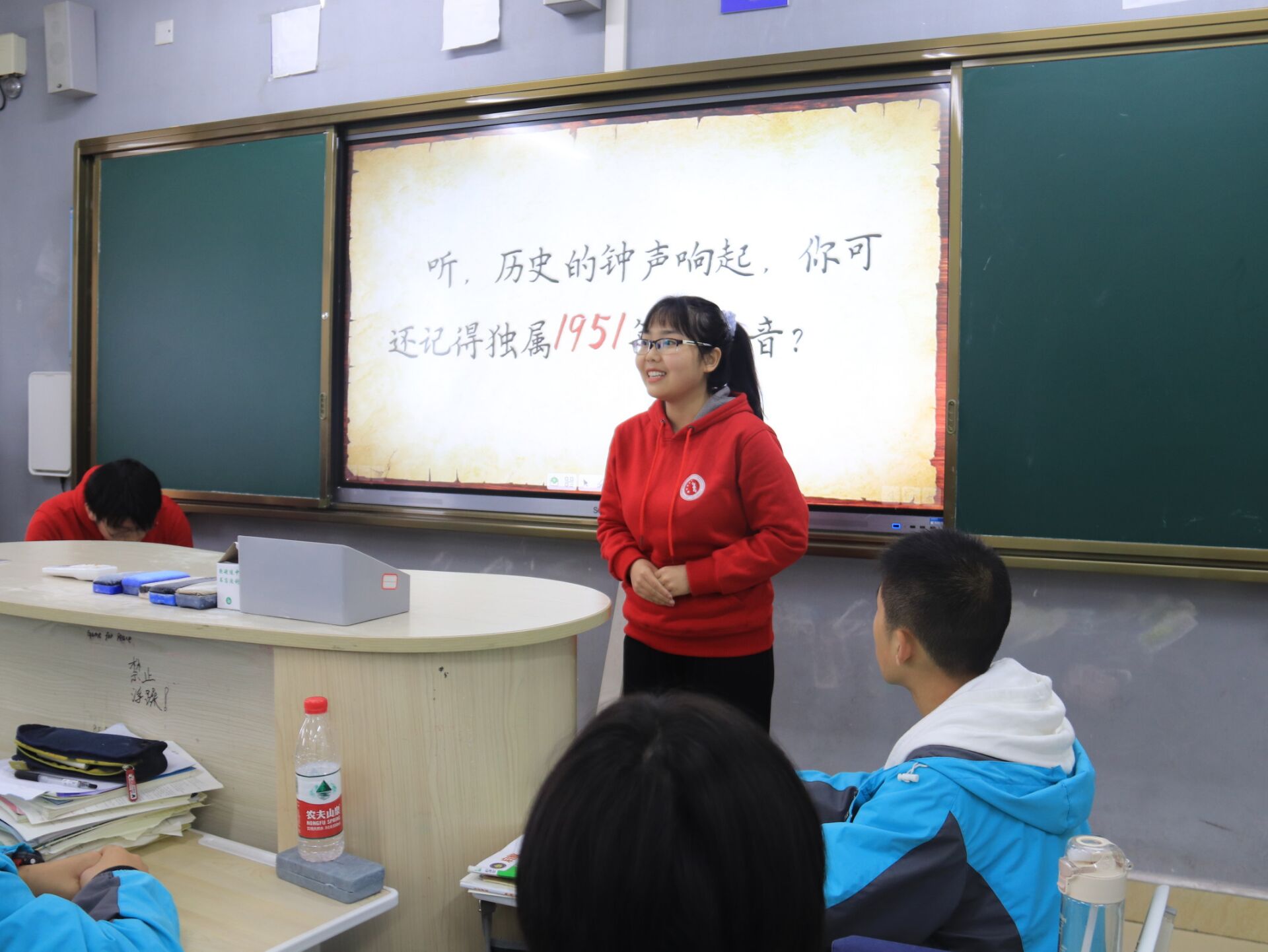 每一段讲述结束后都精心设置了有奖知识竞答环节,朝气蓬勃的初中生们比想象中还要积极:总是在主持人念题目时就迫不及待地举起了手,或是将手放在桌沿“蓄势待发”。题目与此次讲述内容息息相关,其中一个问题是“雄赳赳,气昂昂,跨过鸭绿江”这首歌创作于哪场战争,听完问题后,同学们都齐刷刷地举起了手,轻松说出了正确答案,让人惊喜。同学们眼中闪着光,充满了期待与真诚,这也让讲述人和主持人受到鼓舞,现场气氛十分活跃。