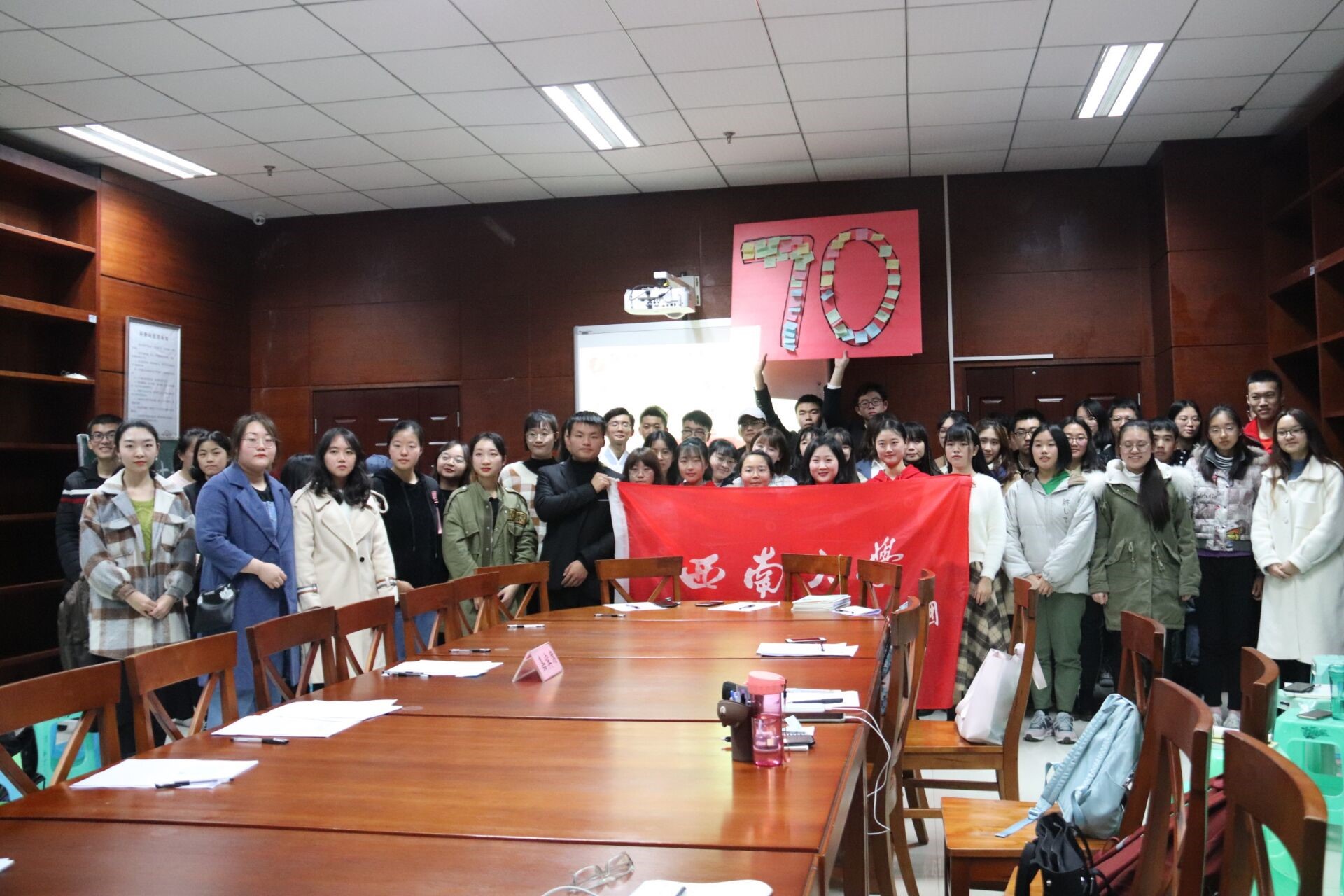 壮丽七十载,奋进新时代。11月23日晚,由yl8858永利集团大学生中国特色社会主义理论体系宣讲团(以下简称“中宣团”)举办的“建国70载——我为阿中喝个彩”时政半月谈活动在中图三楼研修间拉开帷幕。