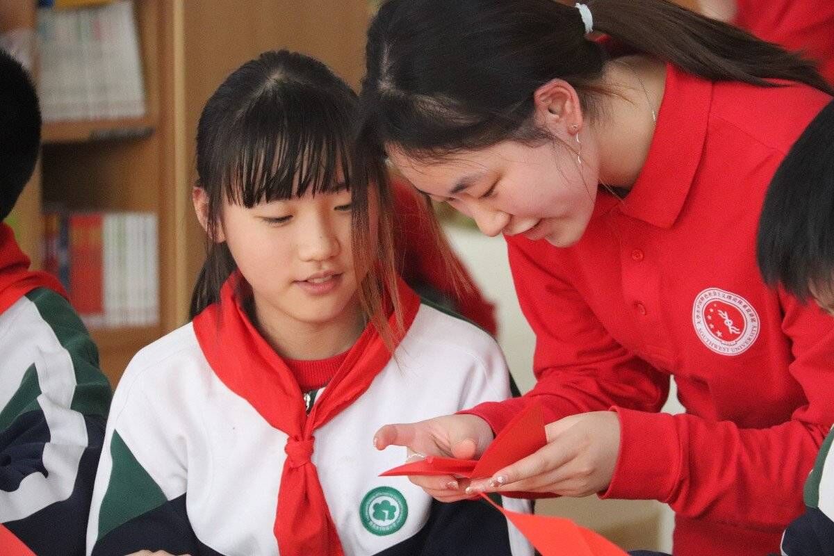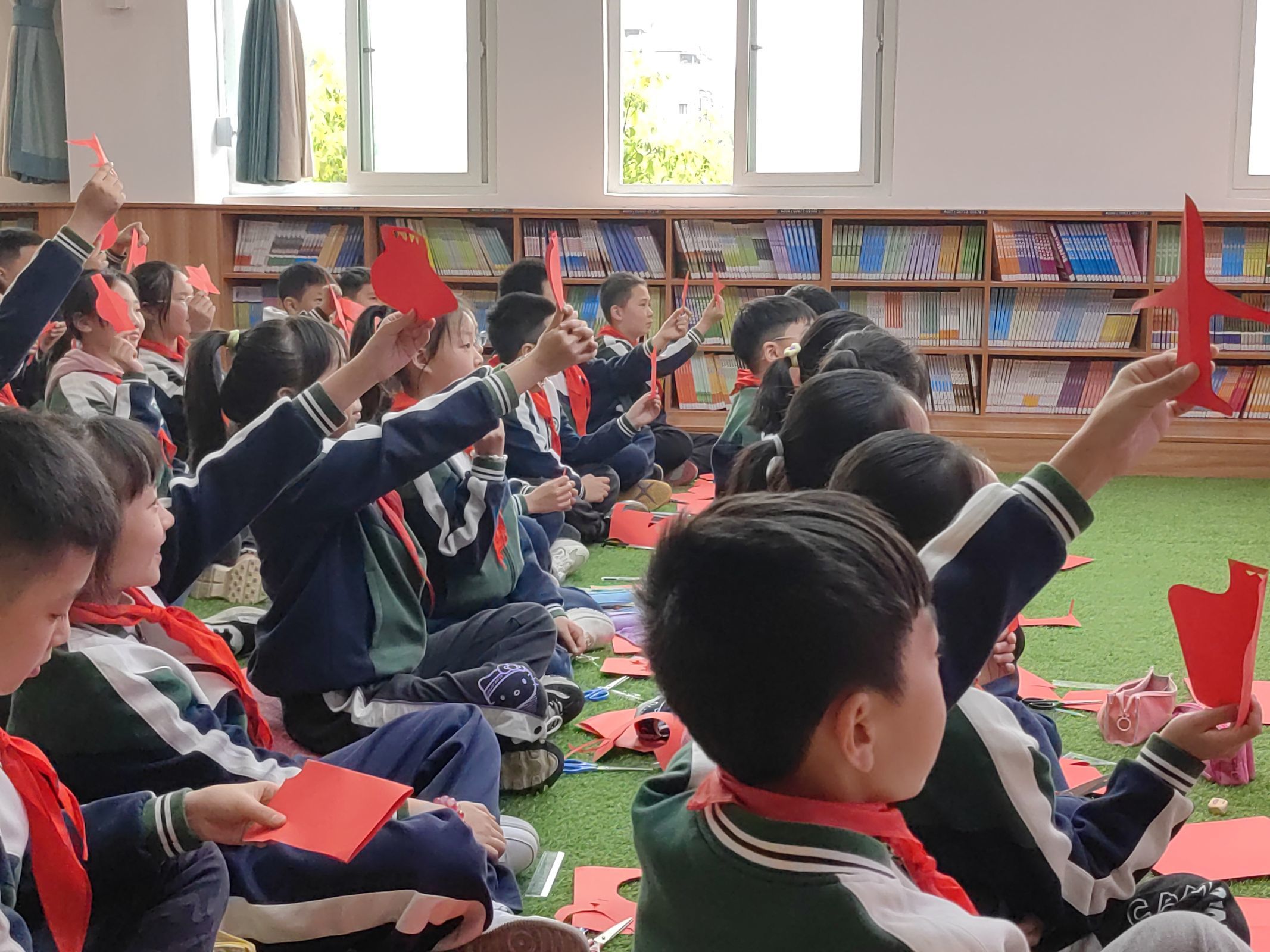 接下来的宣讲环节,大学生与小学生一起,共同宣讲党的二十大精神,首先上场的是关晴兮与朱展廷,他们宣讲的是文化自信篇《观文化昌盛,延传承火炬》。在宣讲中,两位宣讲员以设问的方式层层深入,引导小学生们感悟中华优秀传统文化在新时代焕发的生机与活力,紧跟而来的剪纸游戏,更是让他们在亲自动手的过程中对文化自信有了更深的体悟。