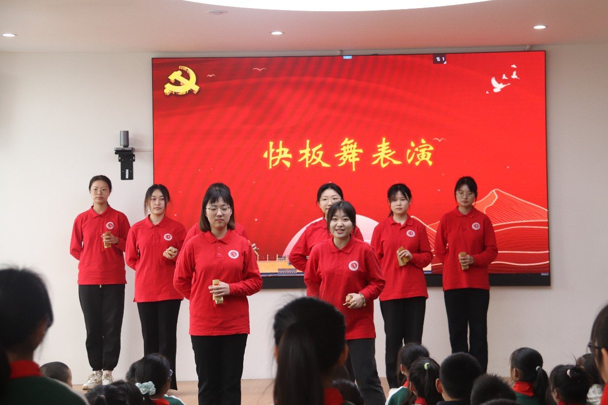 学生宣讲团带领附小的同学们在通俗易懂、丰富有趣的宣讲中学习党的理论,通过将互动小游戏穿插进理论宣讲的方式,让小朋友们在了解党的创新理论的同时又寓学于乐、亲身参与,达到最佳的宣讲效果。宣讲活动在声声清脆的快板中开场,活力四射的快板舞表演激发了现场观众的热情。