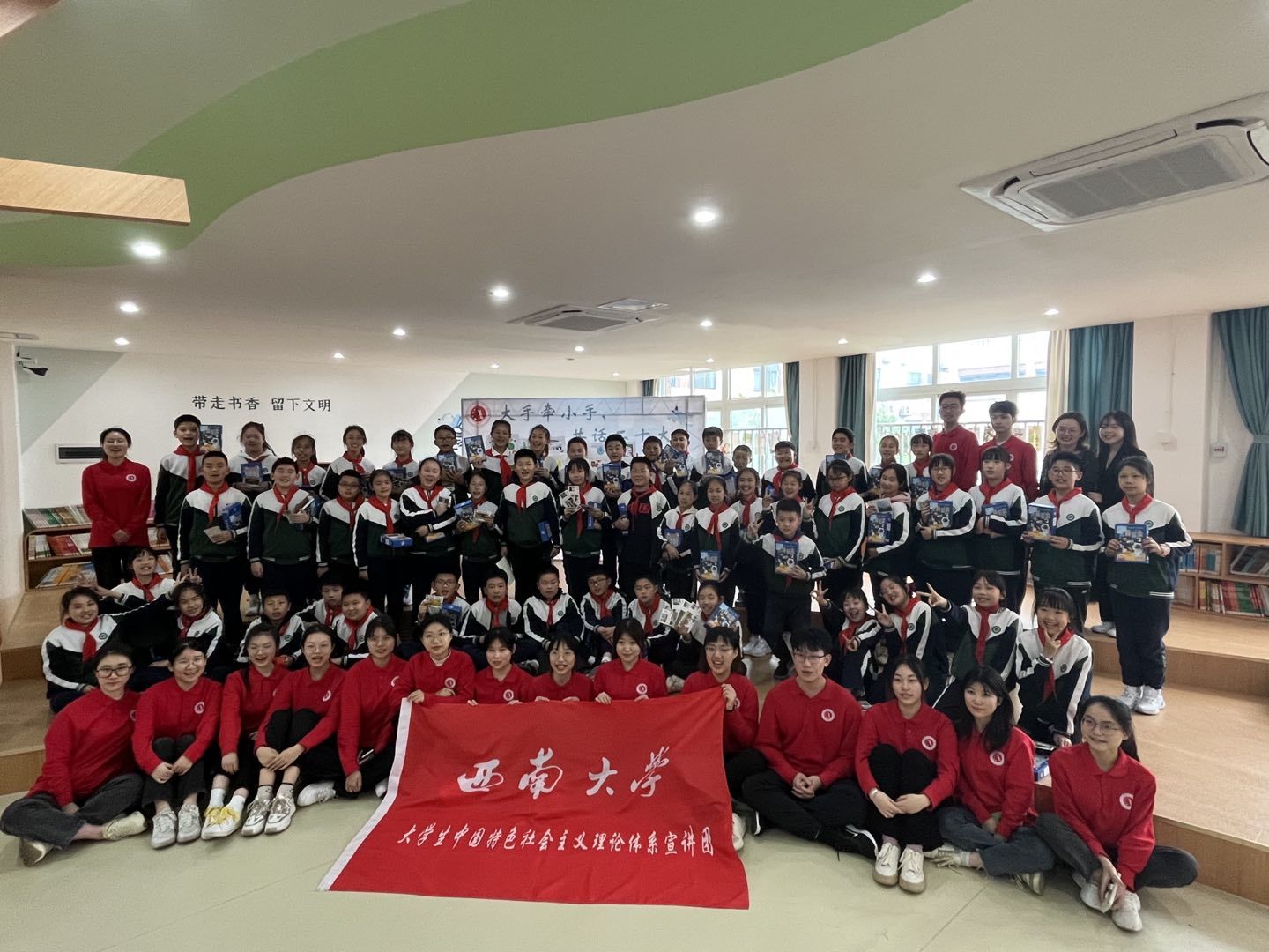 汲取精神伟力,共绘时代画卷。党的二十大报告明确指出,新时代要“用社会主义核心价值观铸魂育人,完善思想政治工作体系,推进大中小学思想政治教育一体化建设”。为响应党的号召,弘扬党的二十大精神,培育时代新人,yl8858永利集团大学生中国特色社会主义理论体系宣讲团(以下简称“学生宣讲团”)于2023年4月7日(星期五),在yl8858永利集团附属小学(以下简称“附小”)开展“大手牵小手,共话二十大”主题宣讲活动。