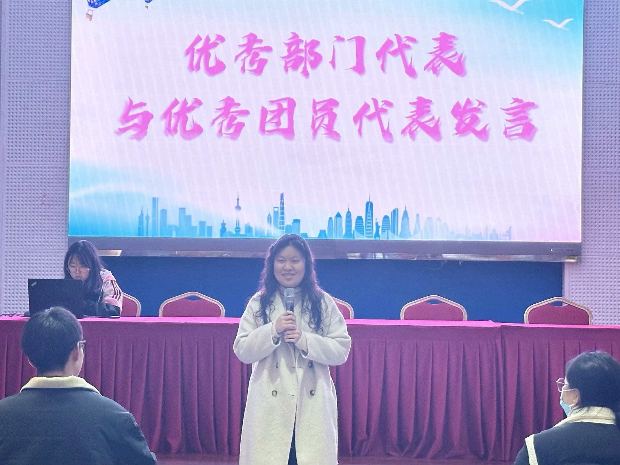 在庄严而激昂的共青团团歌中,大会拉开了序幕。接下来,各部门部长依次上台,就各自部门在过去一学期中的工作内容、取得的成绩、存在的问题以及相关改进措施进行了详细的汇报,并提出了相应的改进措施,展现了小宣人积极向上、追求卓越的精神风貌。