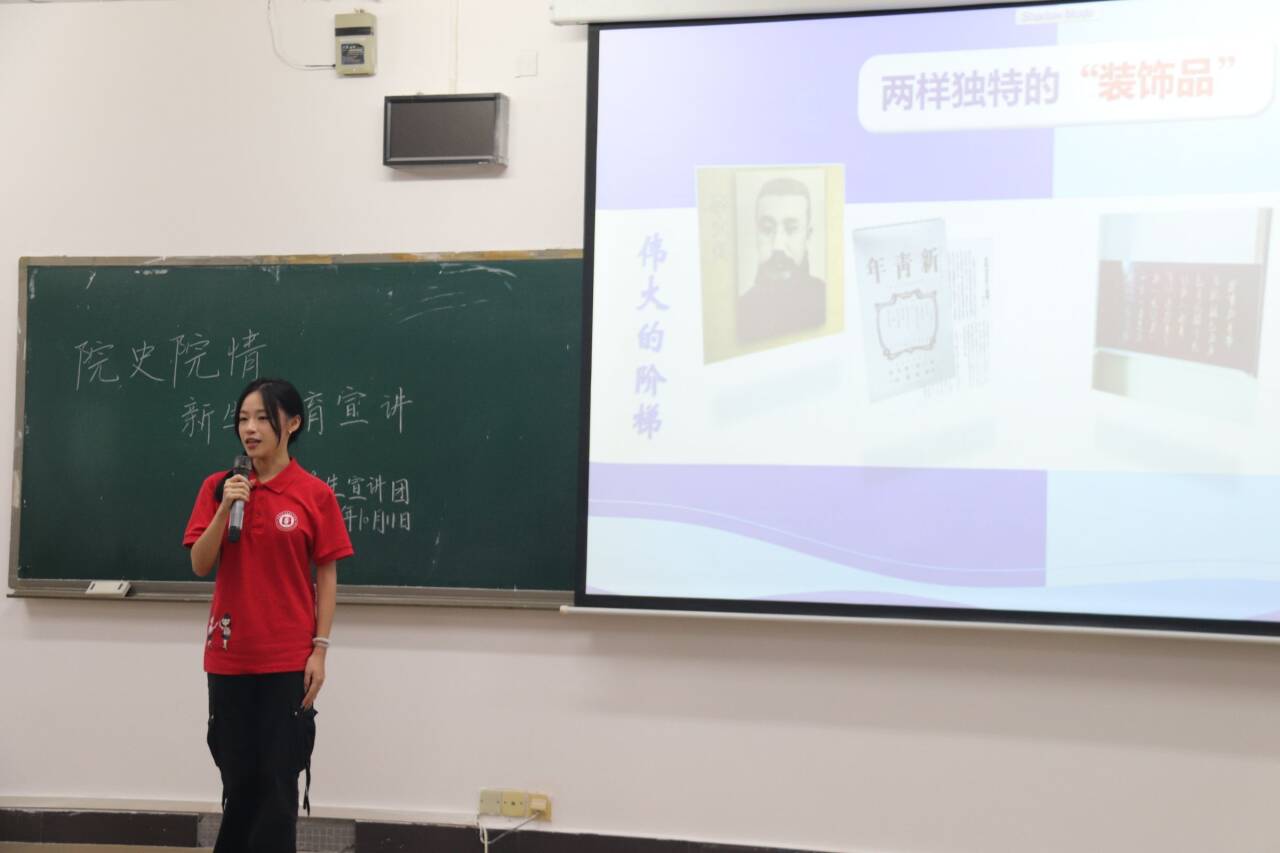 为帮助2024级马院新生们更好地融入大学生活、了解yl88858永利中国,2024年10月11日下午三点,yl8858永利集团大学生中国特色社会主义理论体系宣讲团(以下简称学生宣讲团)在第十教学楼601组织了“相约马院,共度韶华”院史院情新生教育宣讲活动。