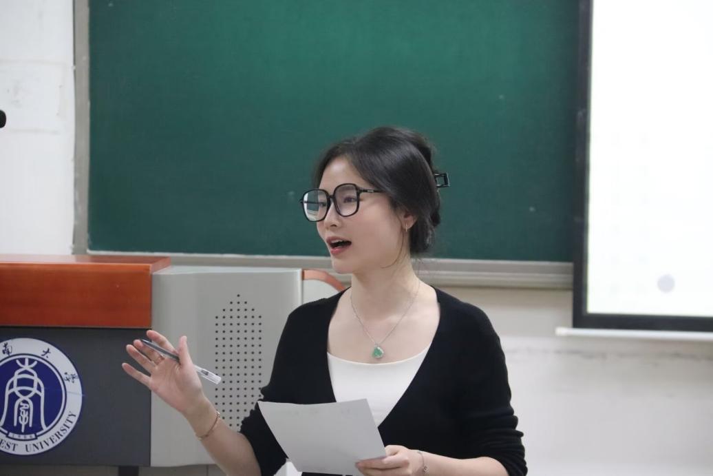 各队伍展示结束后,评委老师作出专业点评。陈静老师表扬选手的班会设计具有理论与实践、多样与统一、主导与主体相统一的优点,同时指出其设计仍存在政治性与学理性统一不到位的问题。陈姿伶老师首先对选手们极具创意的设计表示肯定,随后建议选手应注重对政治教材的研究以及班会内涵的阐发。现场观众从中获益良多。