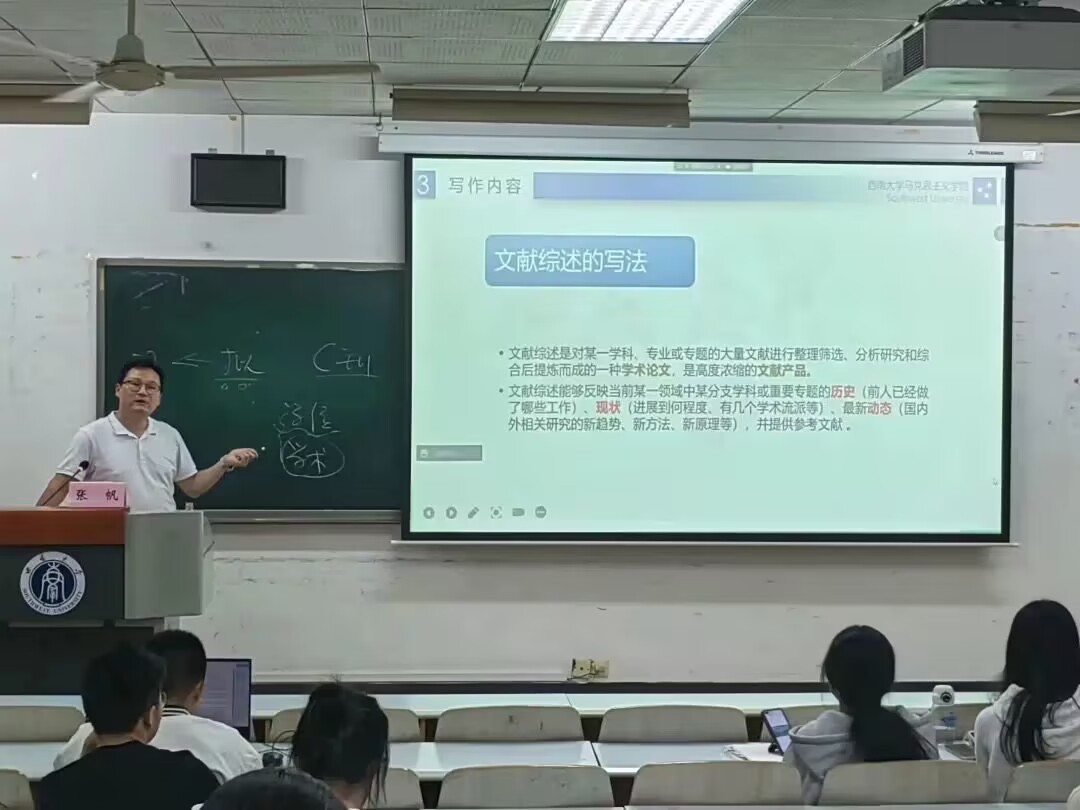 最后,张帆老师向同学们分享了论文写作的注重事项和常见问题,并激励同学们积极动手写作,脚踏实地坚持到底,不断提升自己的写作水平。