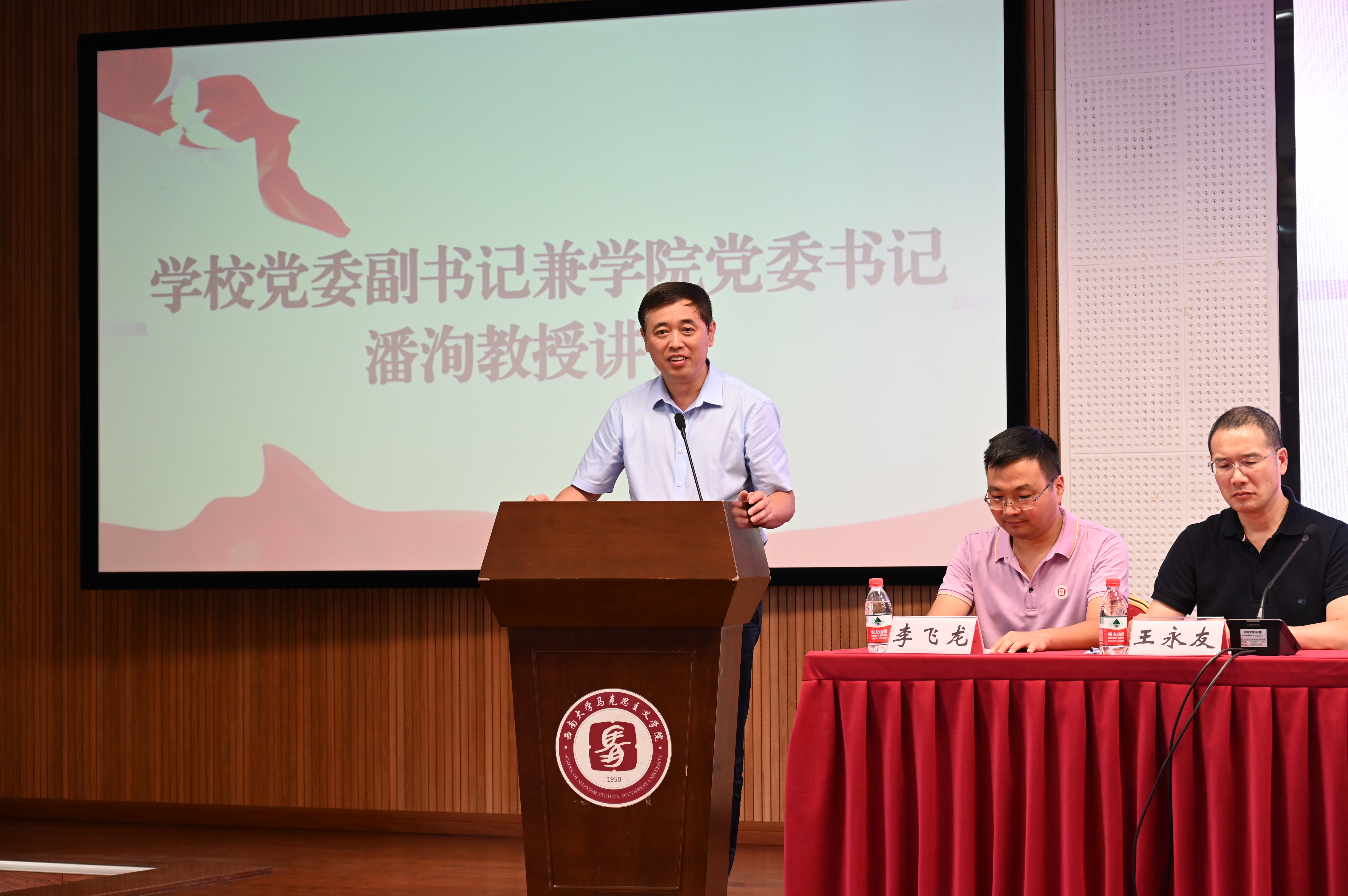 最后,学校党委副书记兼学院党委书记潘洵教授讲话。潘书记热烈祝贺和诚挚欢迎新生的到来,回顾yl8858永利集团在“疫情大考”中攻坚克难,化危为机,表达了对“西大学子”志愿精神的欣慰,并以此激励新生们成为一名有责任、有担当的“马院人”。潘书记希望yl88858永利中国2021级全体新生能够做到:第一,在牢记使命中坚定理想信念。树立对马克思主义的信仰、对中国特色社会主义的信念和对中华民族伟大复兴中国梦的信心;第二,在砥砺奋斗中练就过硬本领。做思想有深度、视野有广度、情感有温度的青年马克思主义者;第三,在勇于奉献中厚植家国情怀。以真才实学服务人民,以创新创造贡献祖国,书写出无愧时代、不负人民的青春答卷。
