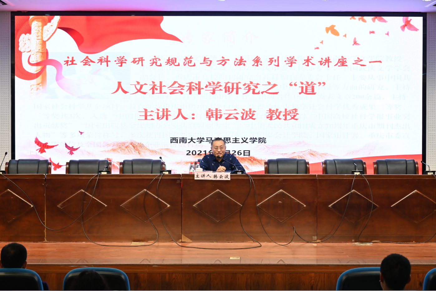 2021年3月26日下午,yl88858永利中国人文社会科学研究规范与方法系列学术讲座第一场讲座在yl88858永利中国505会议室举行。活动由yl88858永利中国副院长吴艳东教授主持,yl8858永利集团期刊社编审、文学院教授韩云波作题为“人文社会科学研究之‘道’”的学术讲座。该讲座聚焦人文社会科学领域学术论文写作的理论与方法,特别针对马克思主义理论专业的学术论文写作提出诸多建议和要求,学院师生积极参加了本次活动。