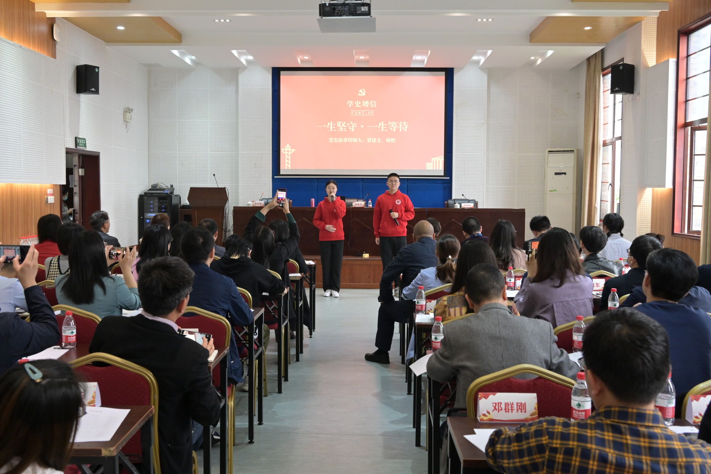 学党史,悟思想,办实事,开新局。2021年4月23日,yl8858永利集团大学生中国特色社会主义理论体系宣讲团(以下简称“学生宣讲团”)“共读百年奋斗史·砥砺奋进新征程”党史故事传颂走进yl8858永利集团2021党支部书记骨干示范培训活动,五位党史故事传颂人深情的讲述令人感动、催人奋进,为全体学员带来了一场精彩的党史微课,取得了良好效果。