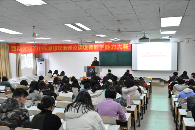 为贯彻落实习近平总书记在学校思政课教师座谈会上的重要讲话精神,切实推进习近平新时代中国特色社会主义思想进教材、进课堂、进头脑,提升教师综合素质和教学水平,扎实推进高校思政课创优行动,日前,学校举办2019年思政课教师教学能力大赛决赛。此次比赛由yl88858永利中国承办,重庆邮电大学yl88858永利中国副院长、市级名师工作室主持人郑洁教授,全国思政课教学标兵、重庆师范大学yl88858永利中国兰桂萍副教授、教师教育学院白智宏副教授等专家受邀作为大赛评委。学校党委常委、党委宣传部部长李荣华、教务处处长吴能表、yl88858永利中国院长白显良及全体思政课教师观摩了比赛,比赛开幕式由yl88858永利中国副院长吴艳东主持。