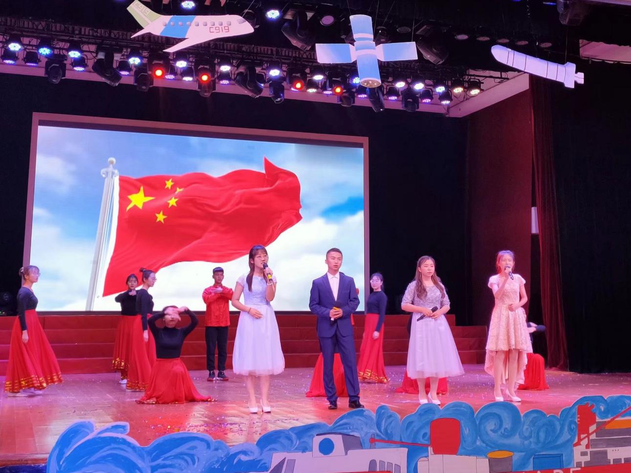 《红旗飘飘》表达了马院师生对祖国、对红旗的满腔热情。晚会在全场大合唱的歌声中、在挥动红旗的人潮中落下帷幕。