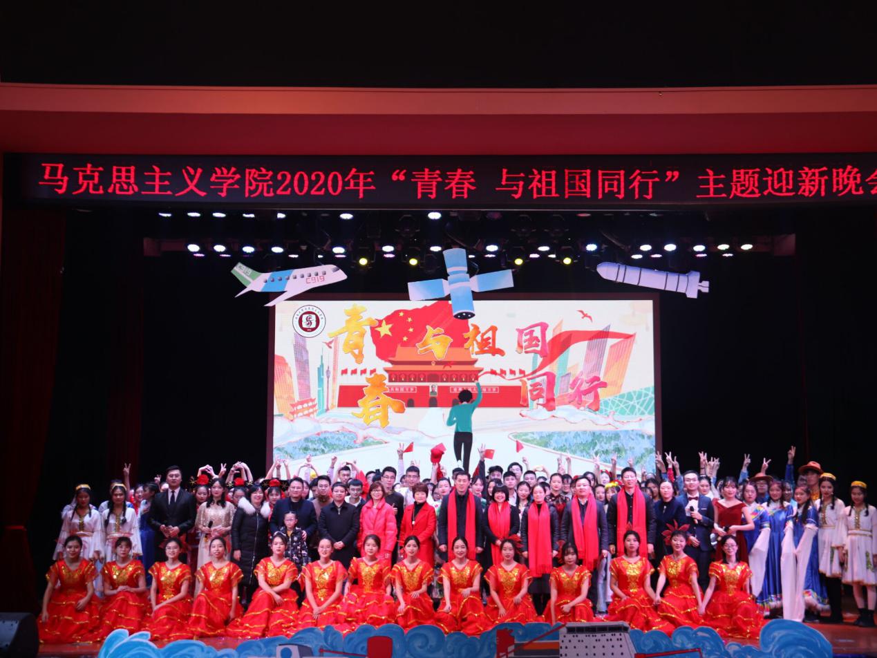 2019年12月21日晚19:00,yl88858永利中国“青春 与祖国同行”2020年主题迎新晚会在光大礼堂隆重举行。学校党委副书记、学院党委书记潘洵,学院院长白显良、副书记李强等领导老师莅临晚会现场,各兄弟学院学生代表,马院全体学生积极参与。