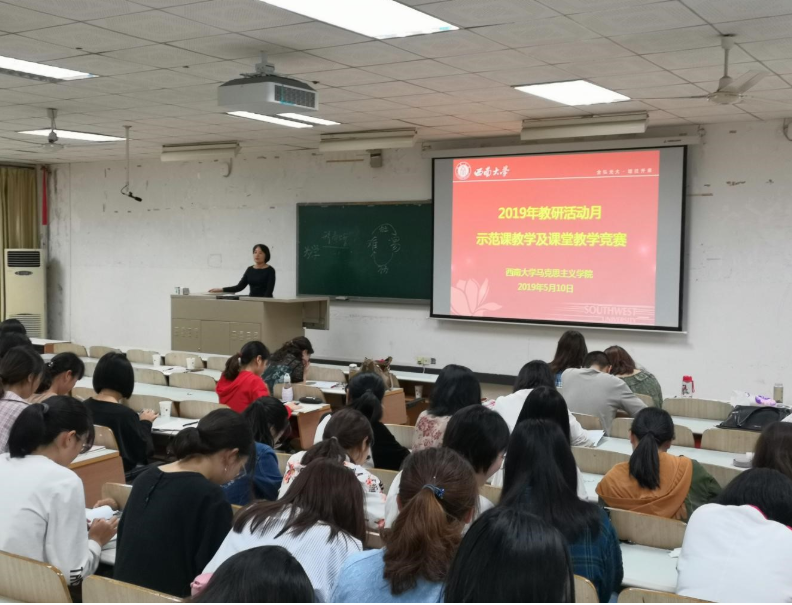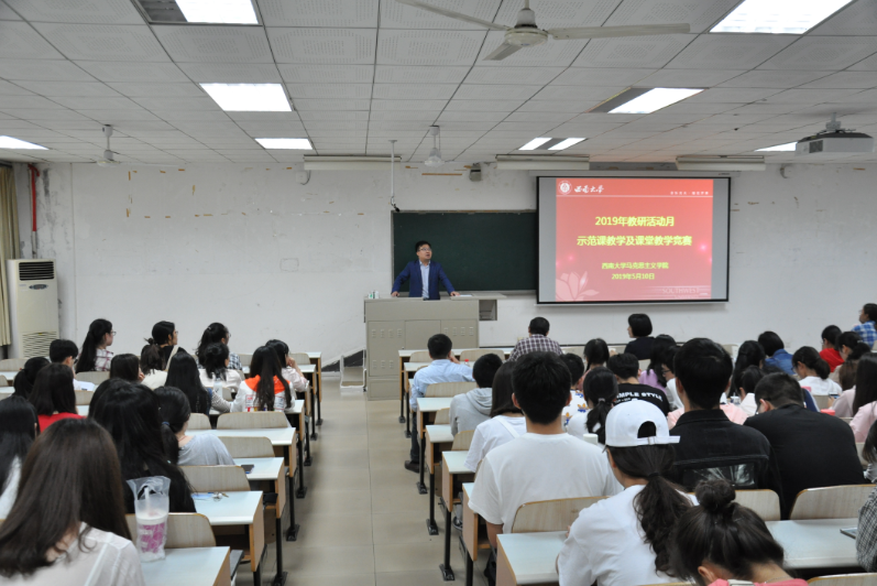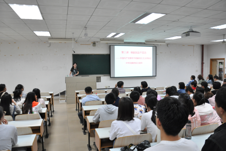 此次活动由马克思主义副院长吴艳东教授主持,邀请张国镛、邹绍清、文红梅三位老师担任评委。学院全体教师和本科17级、18级部分同学参加并观摩与学习。学校原党委书记,yl88858永利中国黄蓉生教授也莅临会场指导观摩此次活动。此次活动分为两个环节,一是示范课教学环节;二是教学竞赛环节。首先,文红梅老师应邀为全体老师讲授示范课,文老师声情并茂用大量的历史史实,通过多媒体、启发式、提问式教学以及生动的语言和端庄的教态呈现了“唤起民众千百万——中国共产党领导下的新民主主义革命之中华民族抗日战争”的教学重点:昭昭前事,惕惕后人。史论结合的授课方式,使得历史知识讲授与价值引领有机结合,让在座的老师们受益匪浅。