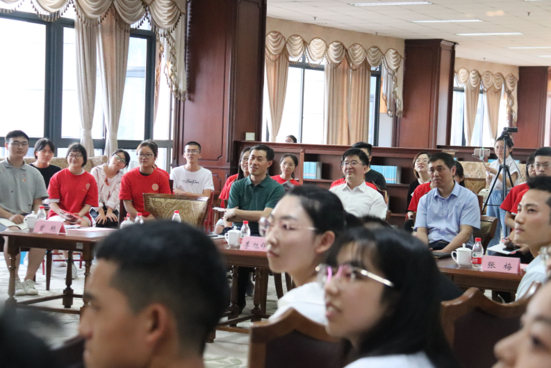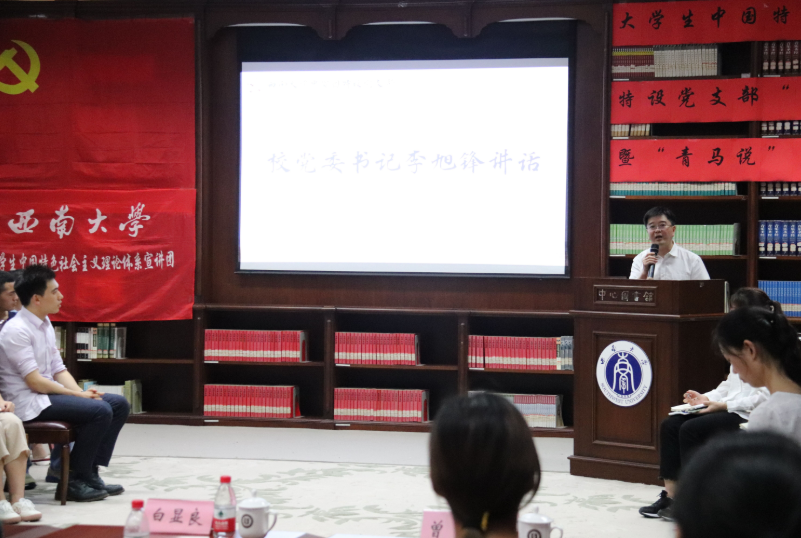 6月13日晚,yl8858永利集团大学生中国特色社会主义理论体系宣讲团特设党支部(以下简称“大学生中宣团”特设党支部)“满分青春”主题党日活动暨“青马说”大学生理论学习沙龙在中心图书馆九楼举行。校党委书记李旭锋走进党支部,与现场青年党员“面对面”交流,讲述自身青春故事,为全体党员带来一堂生动而特别的党课。校党委副书记、yl88858永利中国党委书记(兼)潘洵、yl88858永利中国院长、党委副书记白显良、yl88858永利中国党委副书记张梅、“大学生中宣团”特设党支部全体党员等参加此次活动。活动由yl88858永利中国党委副书记、“大学生中宣团”特设党支部书记曾艳主持。
