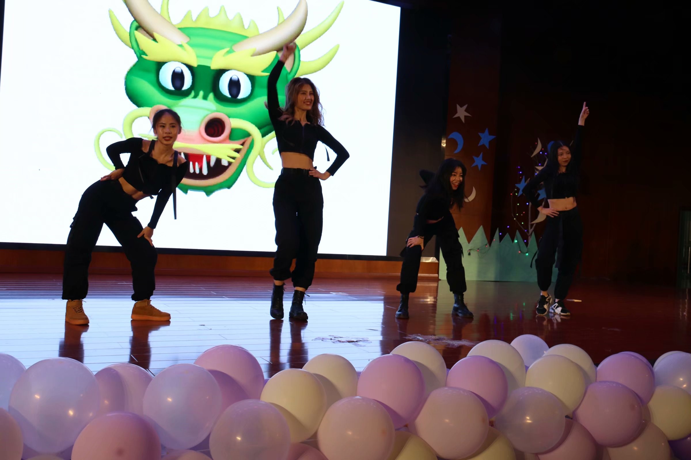 舞 蹈《Four Dragons》动感十足,热情洋溢。力量与柔美相结合,传播着青春的气息。带动了全场的气氛,欢呼声此起彼伏。