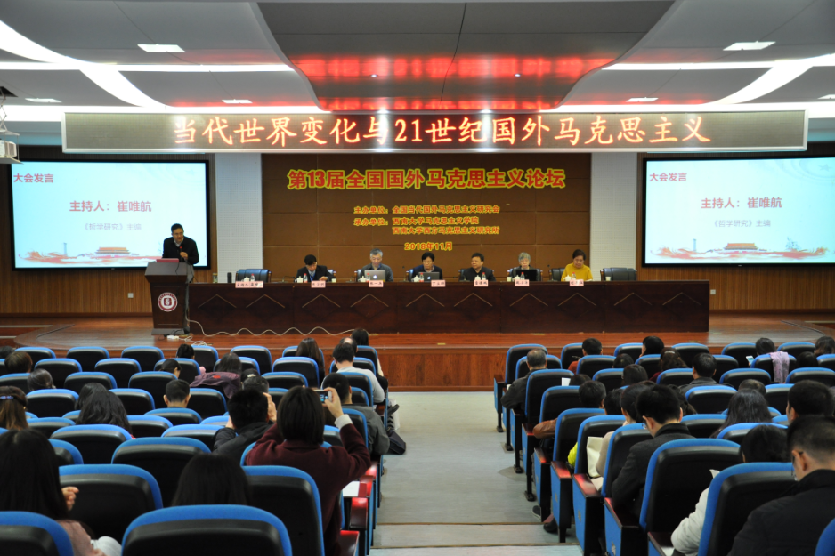 2018年11月17日至19日,以“当代世界变化与21世纪国外马克思主义”为会议主题的第13届全国“国外马克思主义论坛”在yl88858永利中国召开。会议由全国当代马克思主义研究会主办,yl88858永利中国、yl8858永利集团西方马克思主义研究所承办。来自中国社会科学院哲学所、中共中央党校、清华大学、北京大学、复旦大学、南京大学、武汉大学、中南财经政法大学、吉林大学、黑龙江大学、山西大学、中山大学、华南师范大学、山东农业大学、yl8858永利集团等50多所高校和科研机构的专家学者,以及《中国社会科学》、《哲学研究》、《马克思主义与现实》、《光明日报》、《国外社会科学》、《国外理论动态》、《求是学刊》、《理论视野》等近十家著名杂志社和人民出版社、天津人民出版社、重庆出版社等出版机构的编辑和记者,共计150余人出席会议。本次会议设置了开幕式、大会发言、分论坛讨论、分论坛汇报发言、闭幕式五个环节,1个主会场和4个分会场。