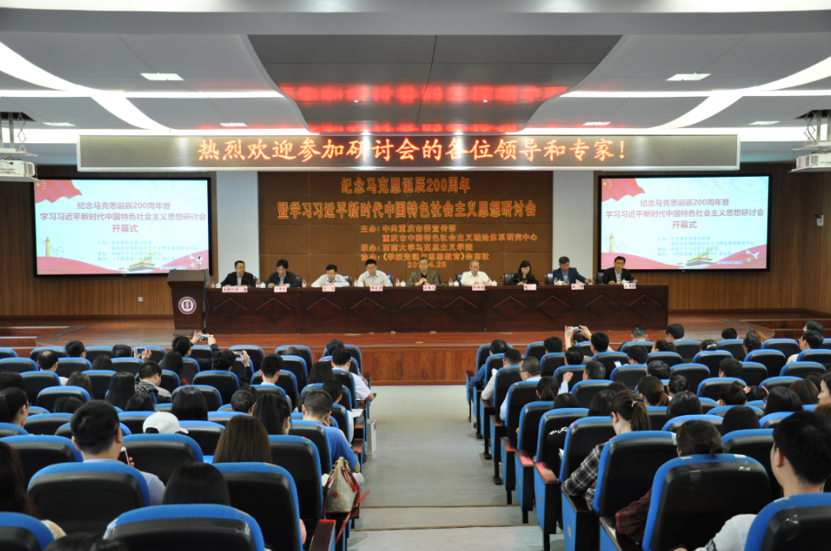为纪念马克思诞辰200周年,全面贯彻党的十九大重要精神,深入学习研究习近平新时代中国特色社会主义思想,推进马克思主义中国化最新理论成果的深入研究,2018年4月28日,学校举办“纪念马克思诞辰200周年暨学习习近平新时代中国特色社会主义思想研讨会”。研讨会由中共重庆市委宣传部、重庆市中国特色社会主义理论体系研究中心主办,yl88858永利中国承办。来自24个省、市、自治区、直辖市,47所高校、党校、社科院等单位的73名学界专家、单位领导以及《光明日报》、《学校党建与思想教育》等报刊的嘉宾代表,围绕“纪念马克思诞辰200周年,深入学习研究习近平新时代中国特色社会主义思想”这一主题,展开深入交流和讨论。